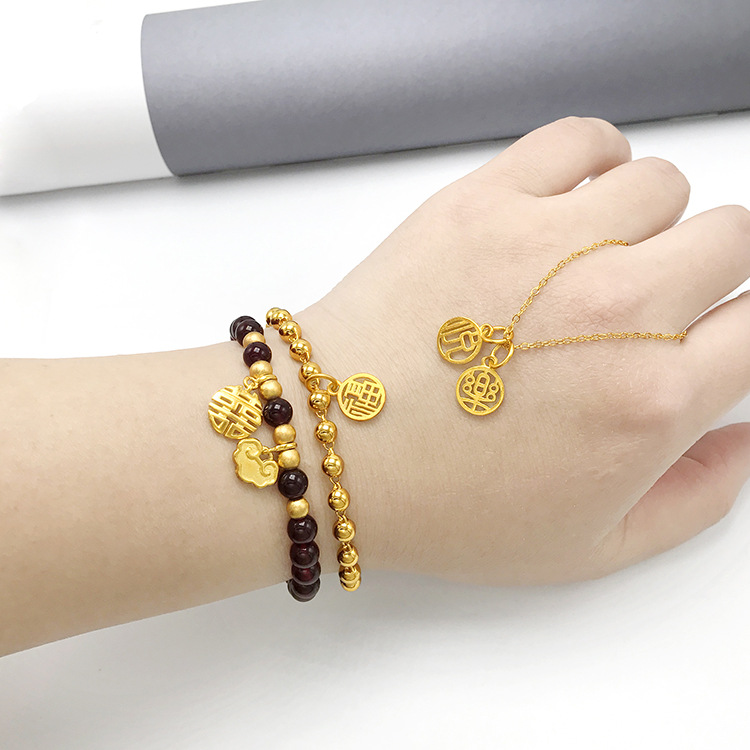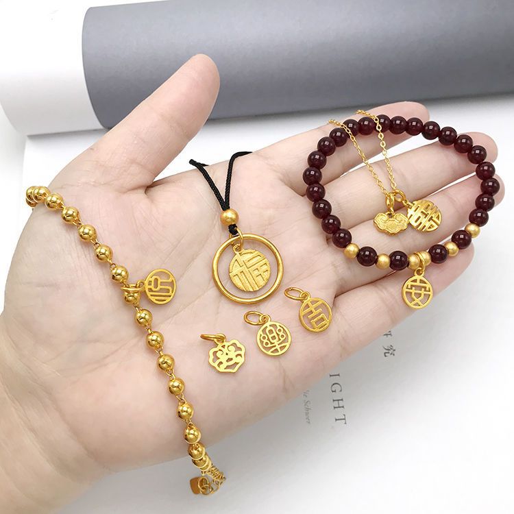Vietnam Sand Gold Antique Style Plate Pendant Women's Fortune Plated Necklace Clavicle Chain Necklace Pendant Bracelet Pendant for Girls Lock Pendant