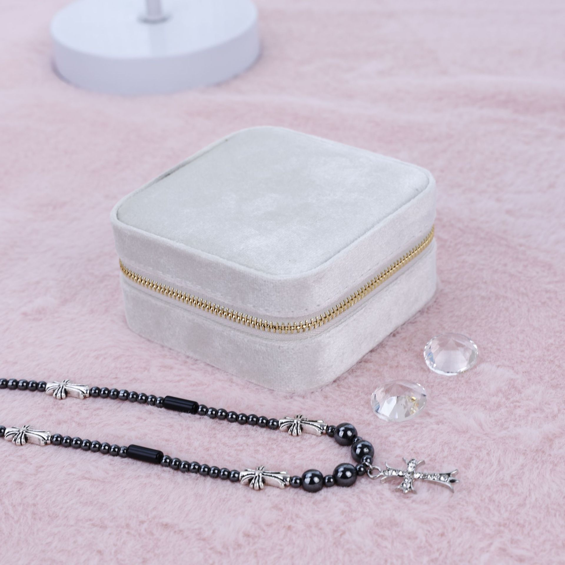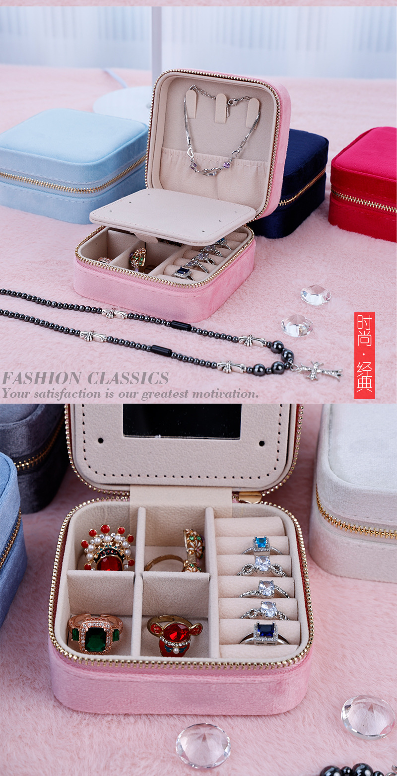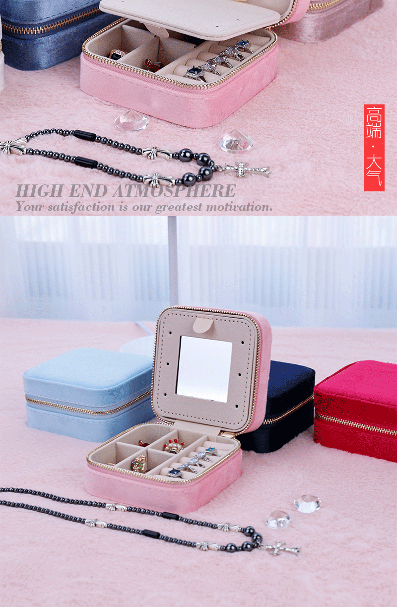 | 品名: | 天鹅绒镜子款双层首饰盒 | 材质: | 天鹅绒+塑胶盒+珠粒绒+拉链 |