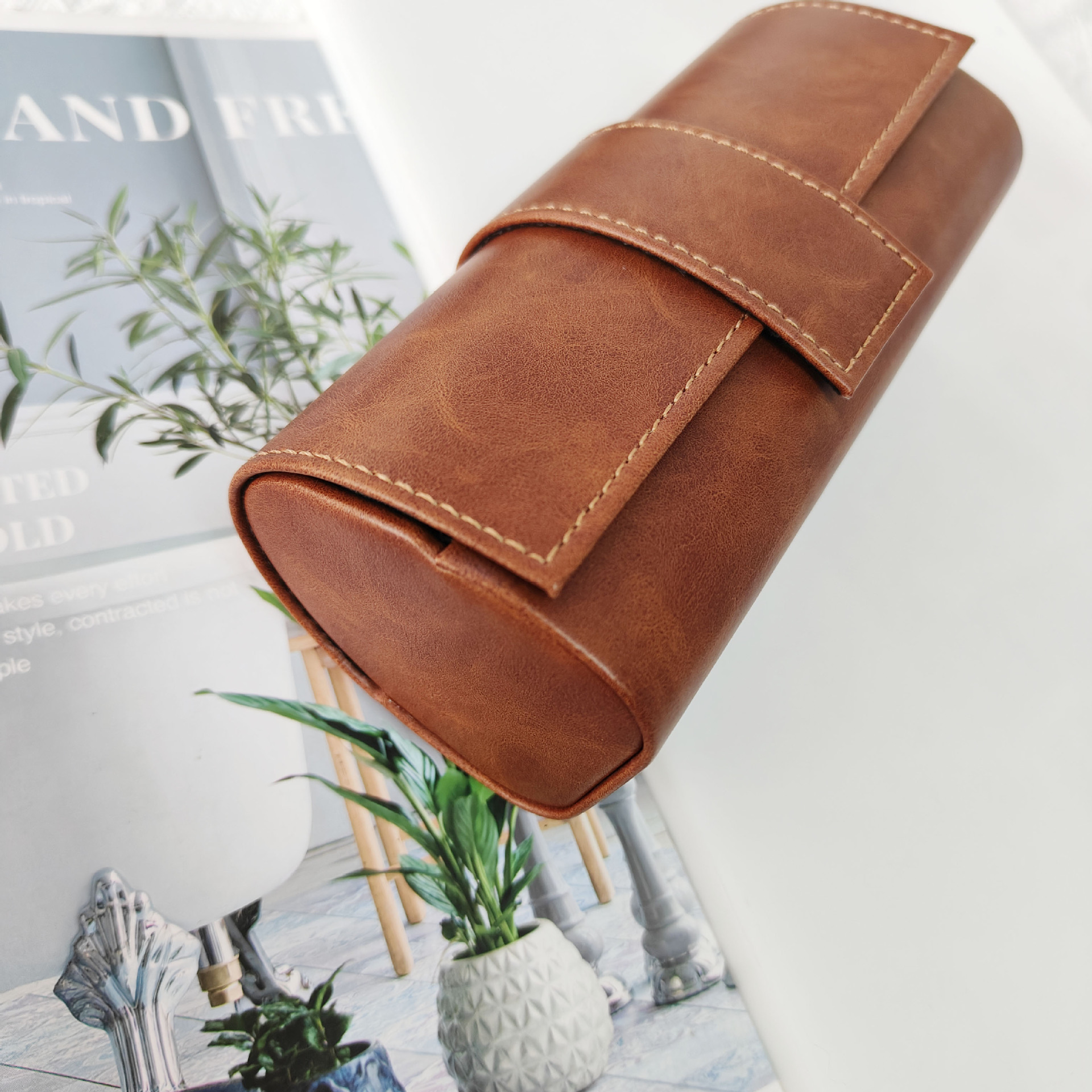 Large retro leather handmade portable glasses case anti-pressure high-grade European and American sunglasses men's sunglasses case women