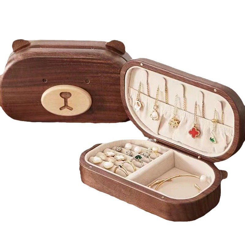 Solid Wood Bear Jewelry Box Small Exquisite Ring Necklace Storage Box Portable Jewelry Box Girl Cute Gift