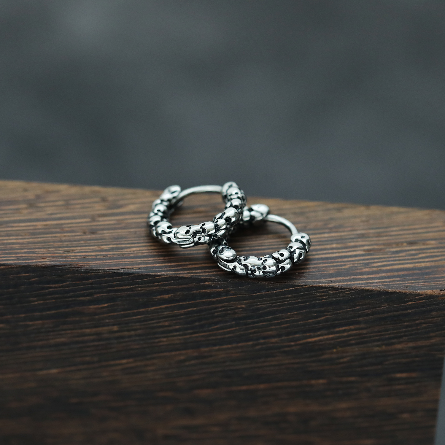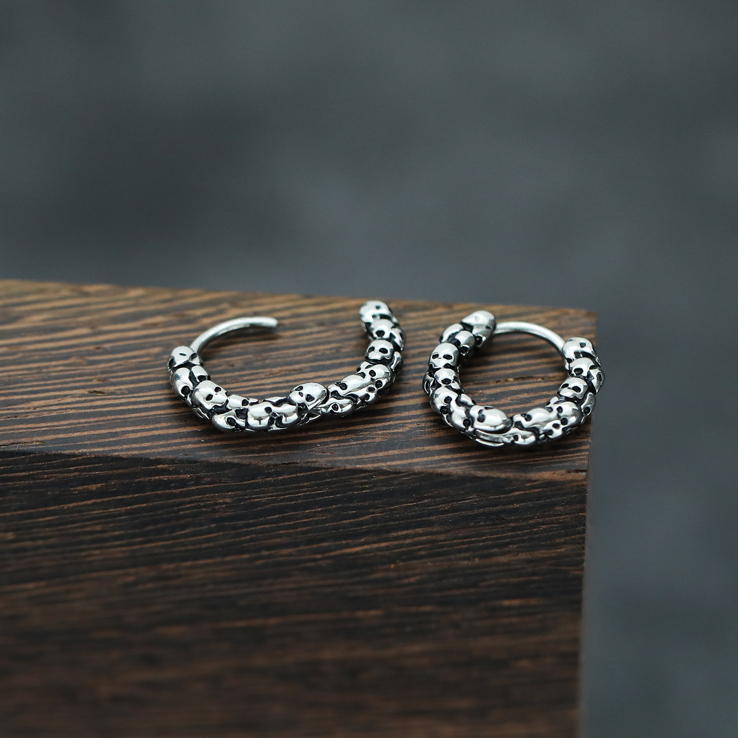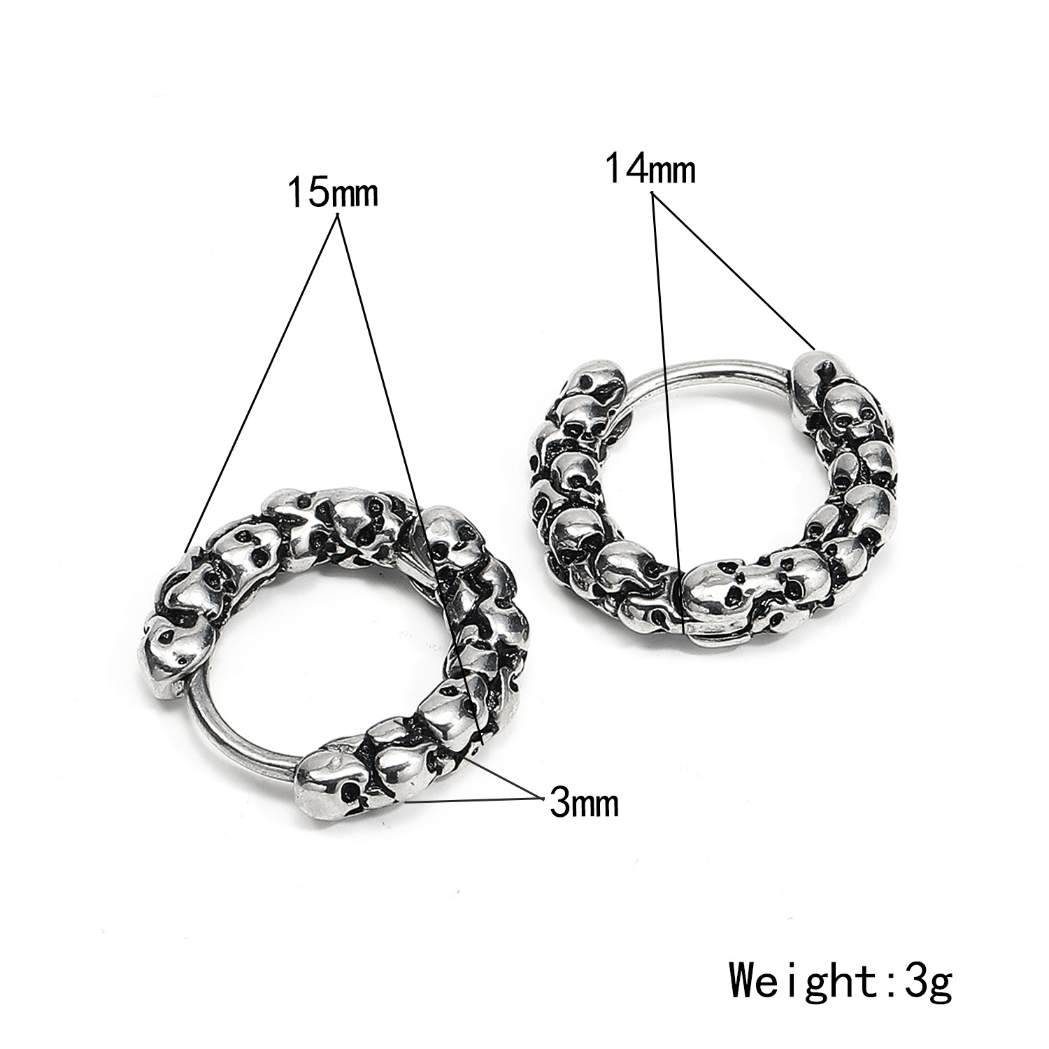 European and American Gothic retro fashion skull head half earrings ear buckle personality trendy men's all-match titanium steel ghost head earrings