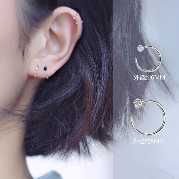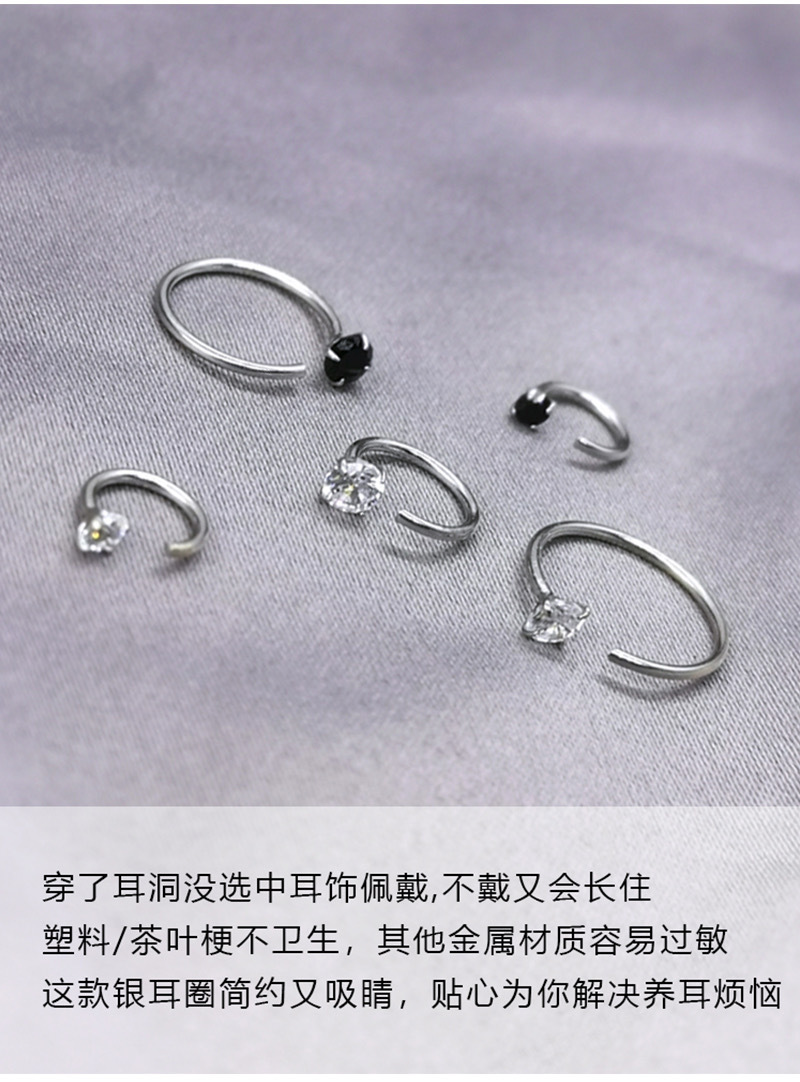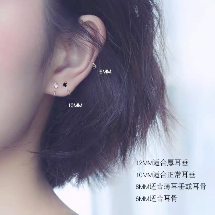 Ruye 999 sterling silver four-claw zircon earrings women's simple light luxury advanced luminous earrings women's Korean niche silver earrings
