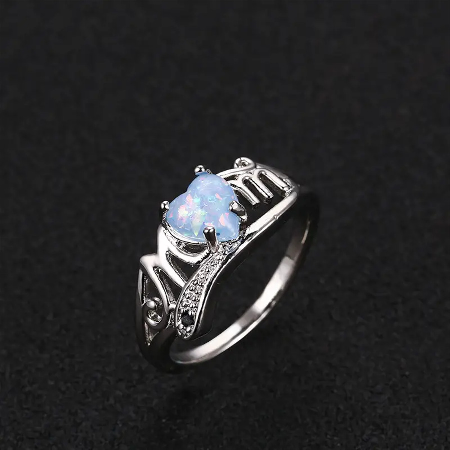 Cross-border hot mom ring fashion peach heart Opal Mother's Day gift mom ring inlaid heart-shaped jewelry