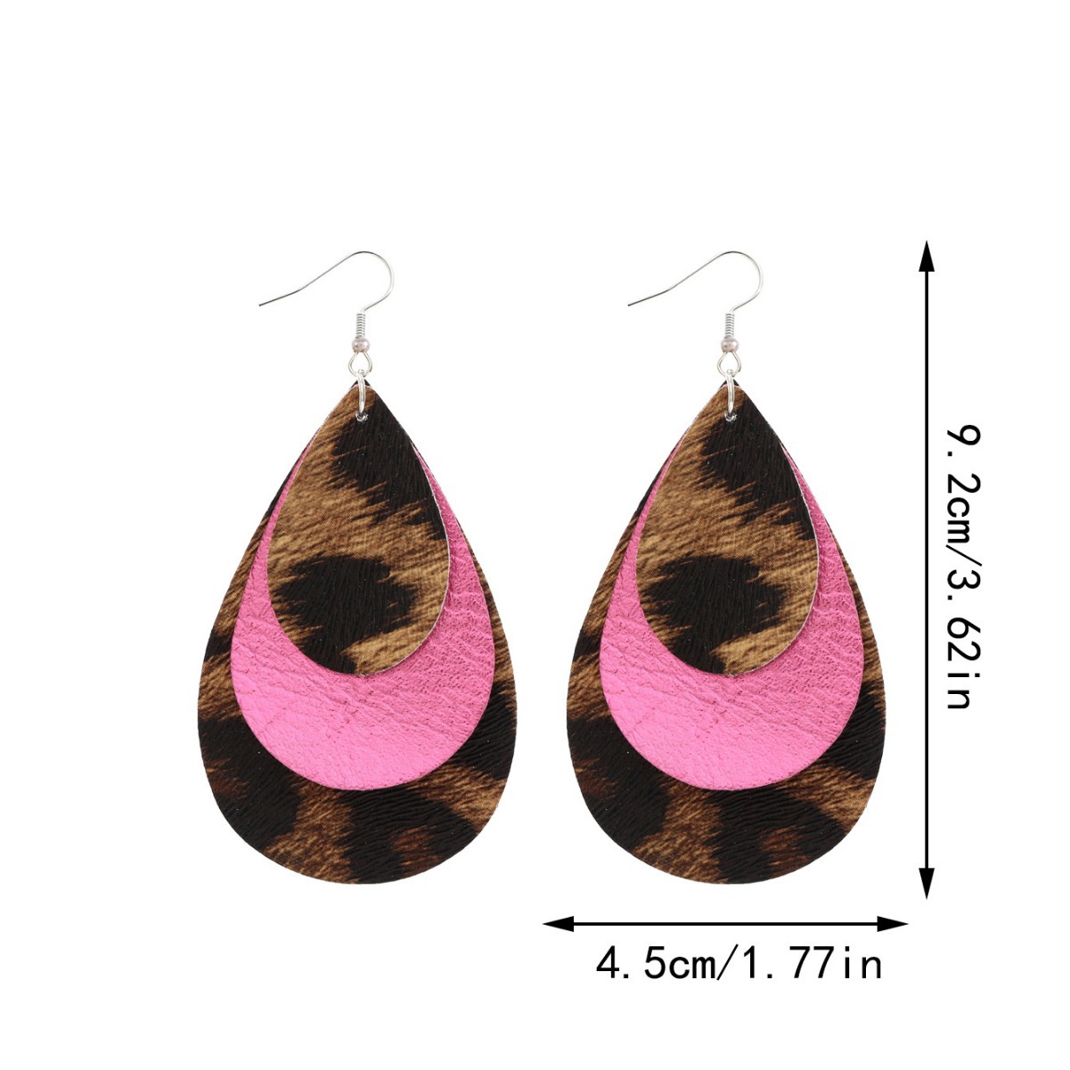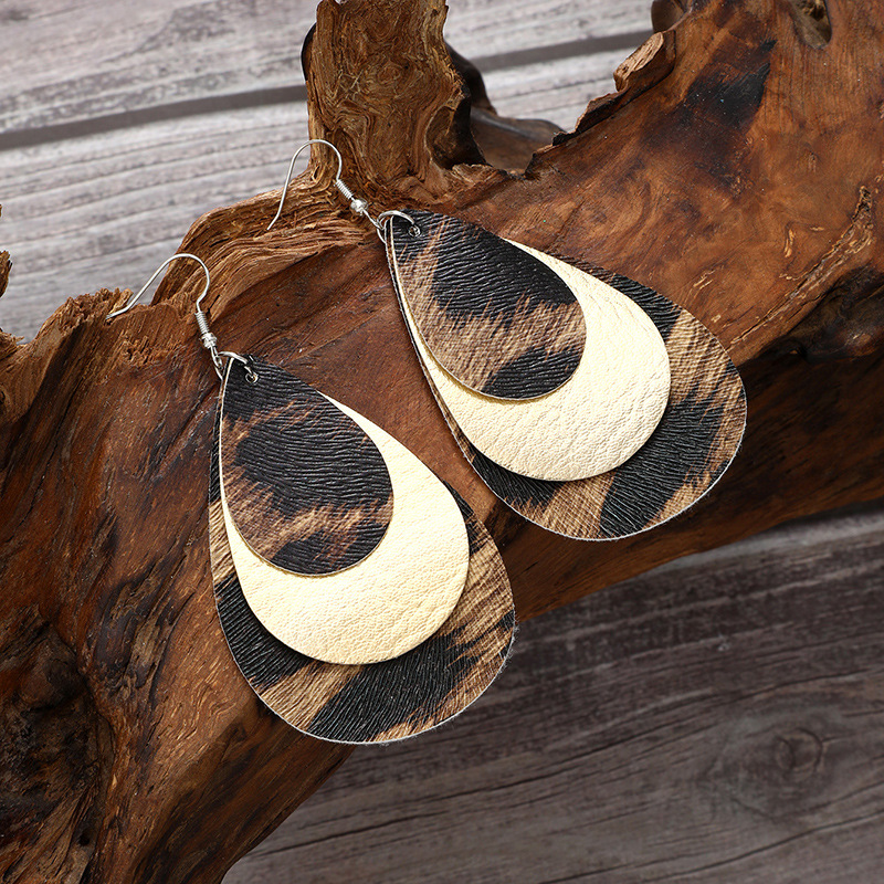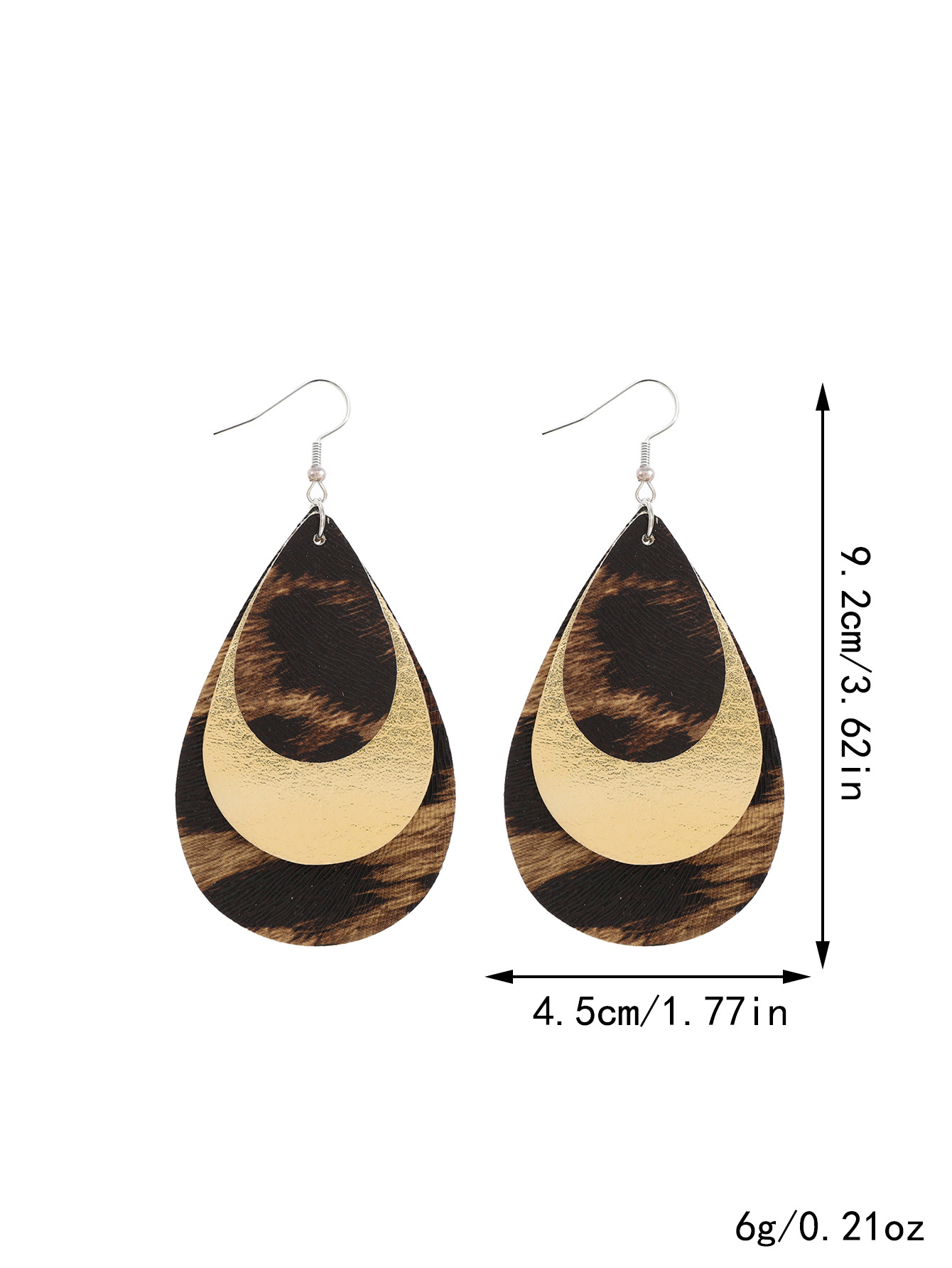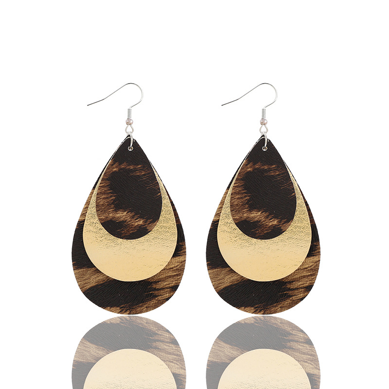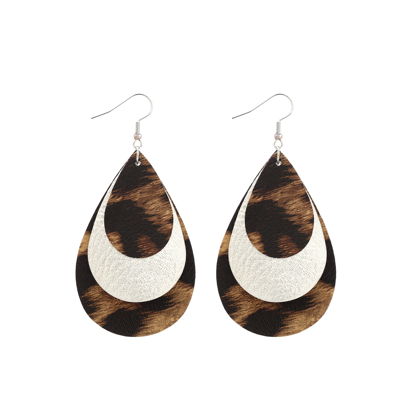 Cross-border retro three-layer water drop leopard leather earrings European and American women AliExpress Amazon