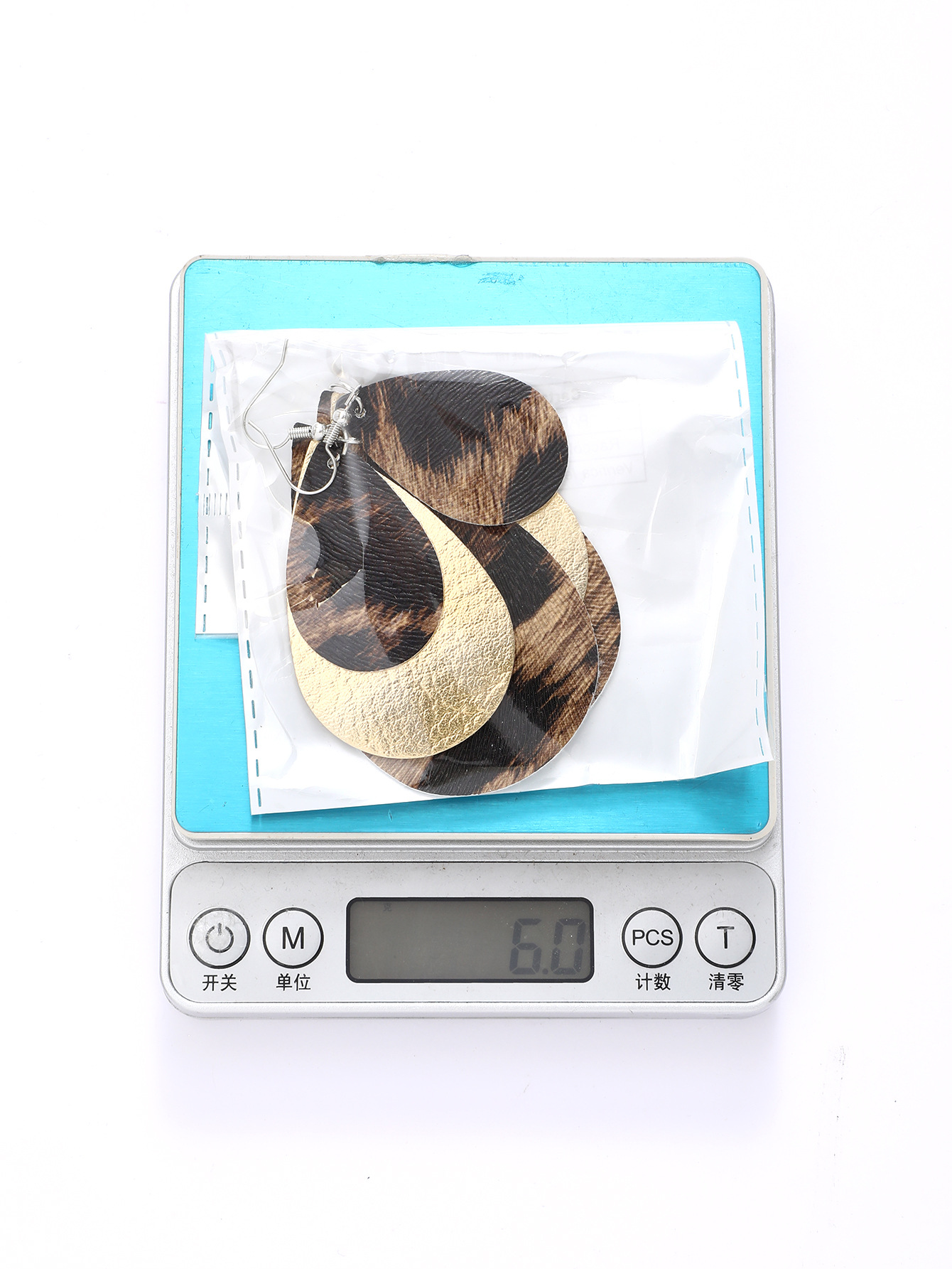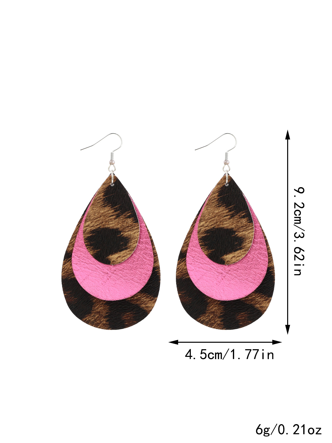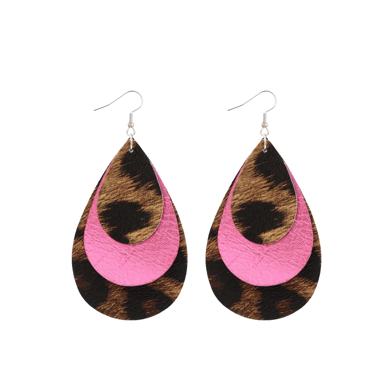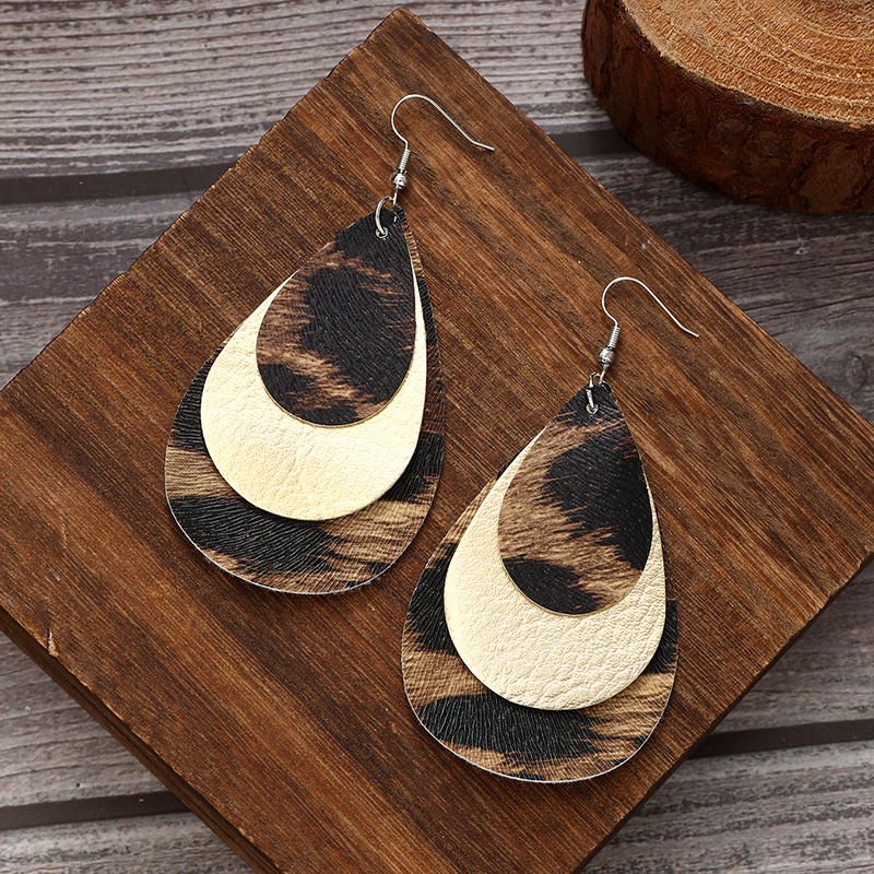 Cross-border retro three-layer water drop leopard leather earrings European and American women AliExpress Amazon