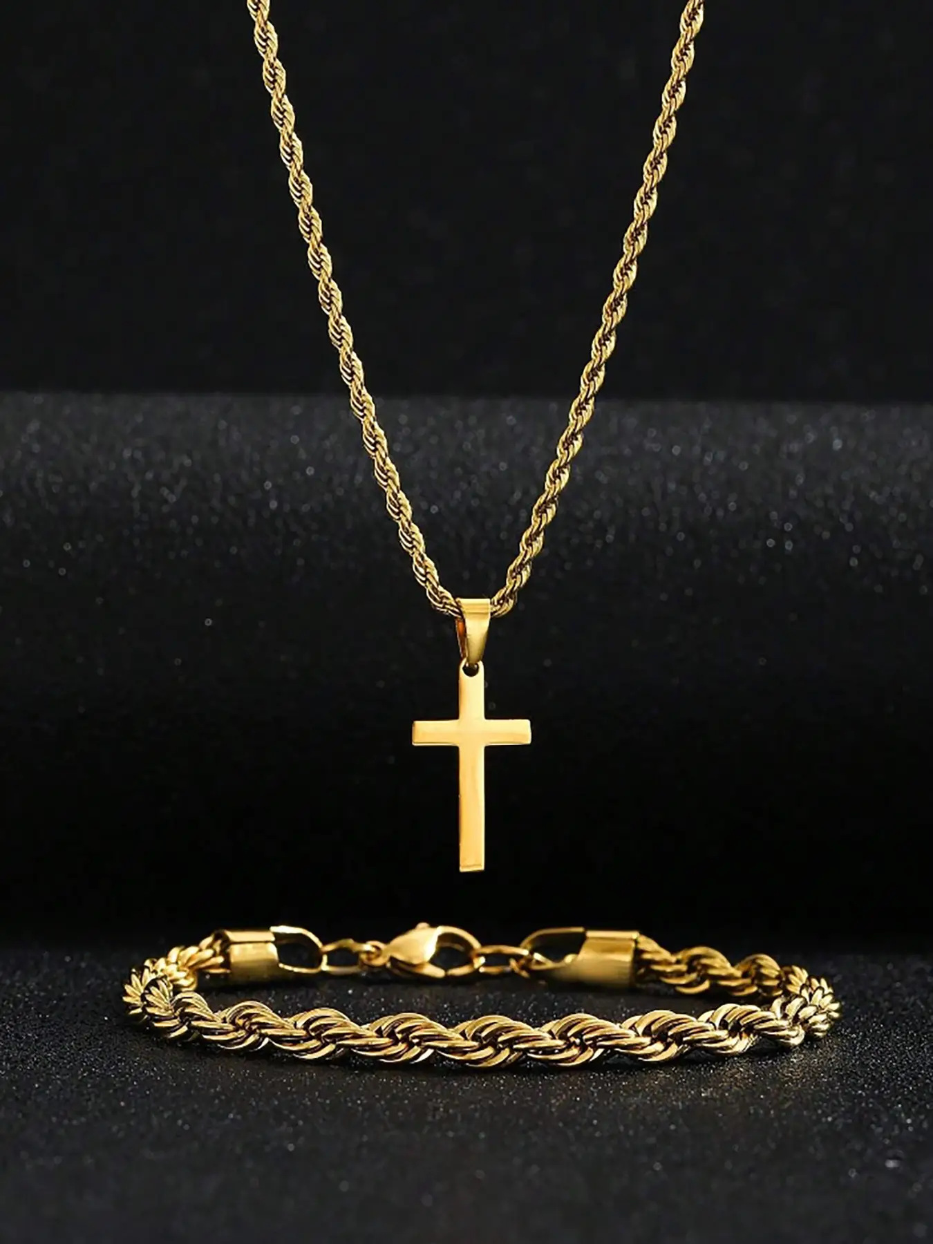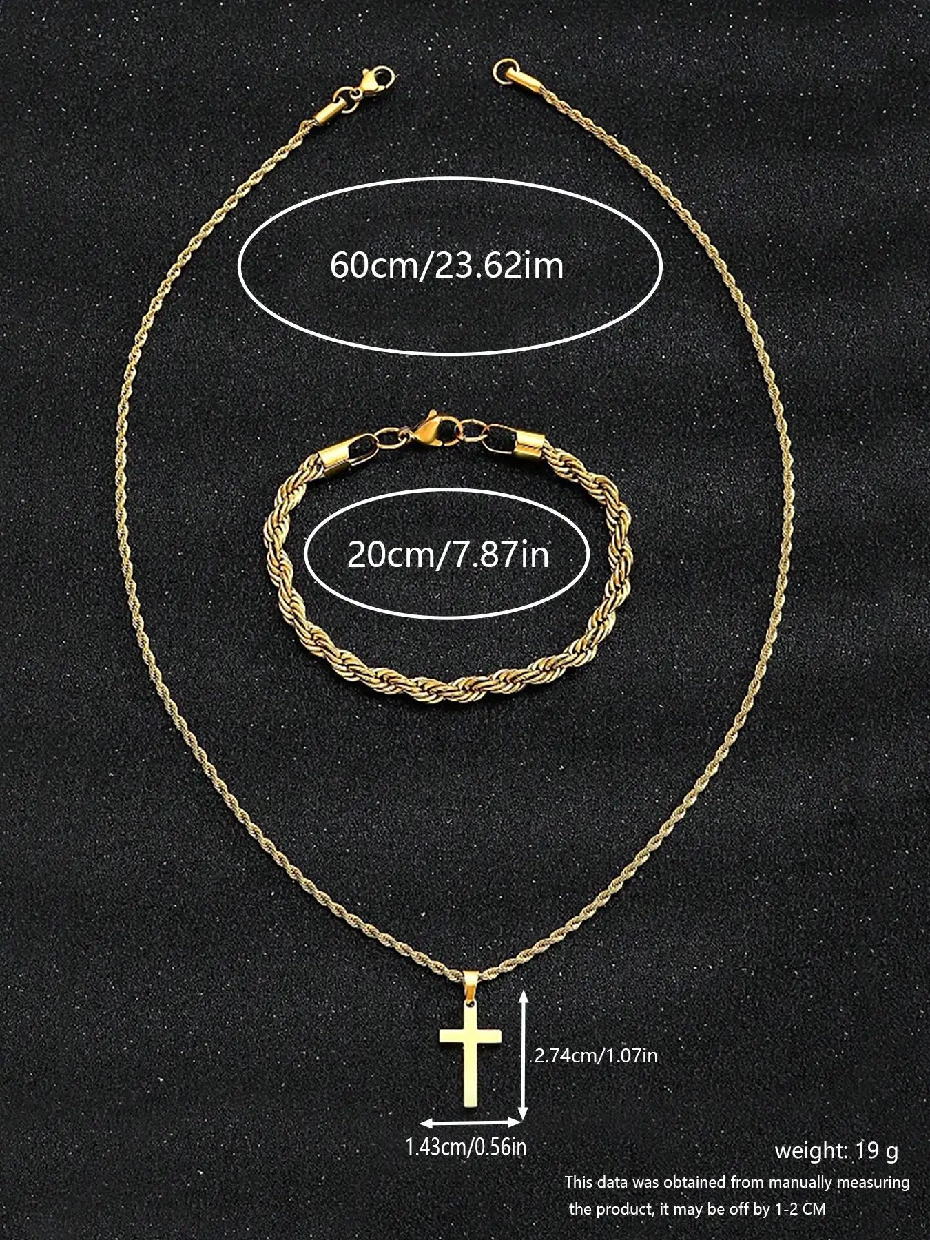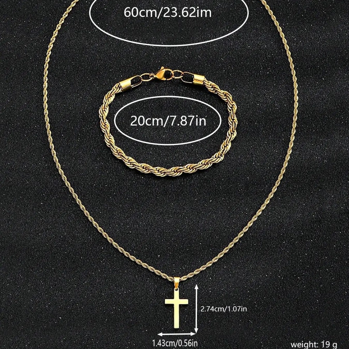 Men's Cuban hip hop twist chain hiphop trendy male cross pendant necklace bracelet jewelry suit
