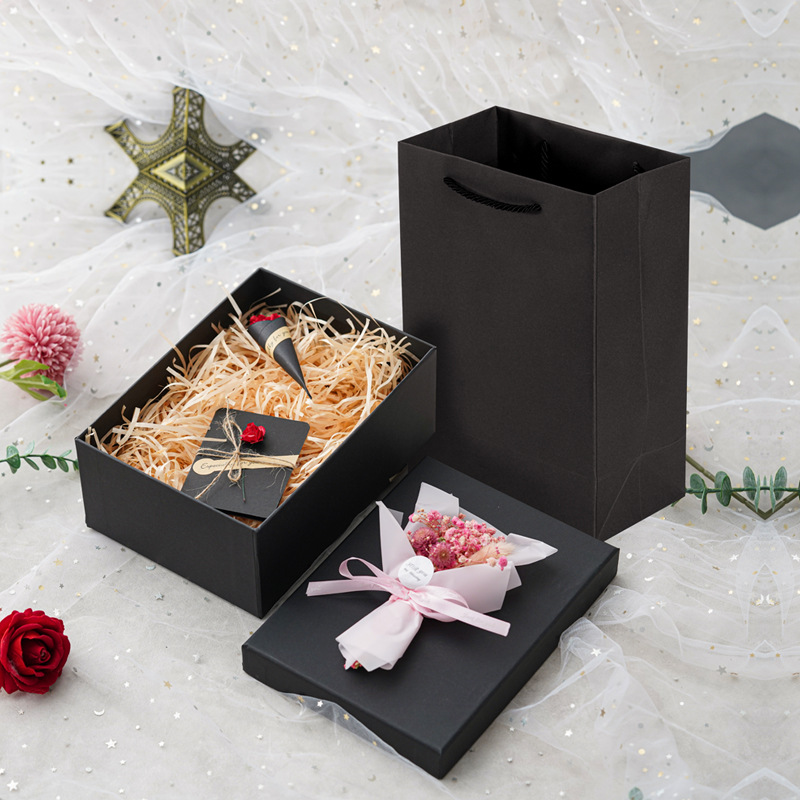 Color: Black red rose (gift bag, raffia, greeting card)