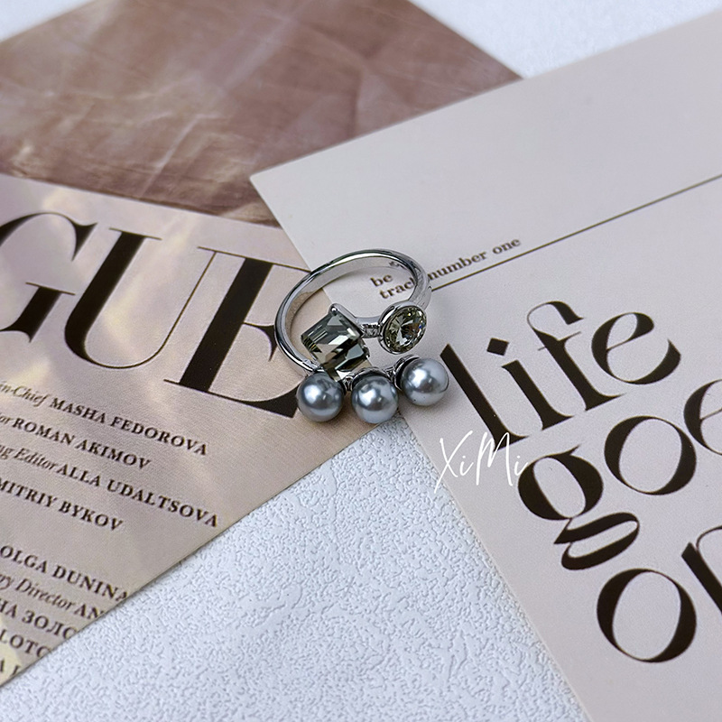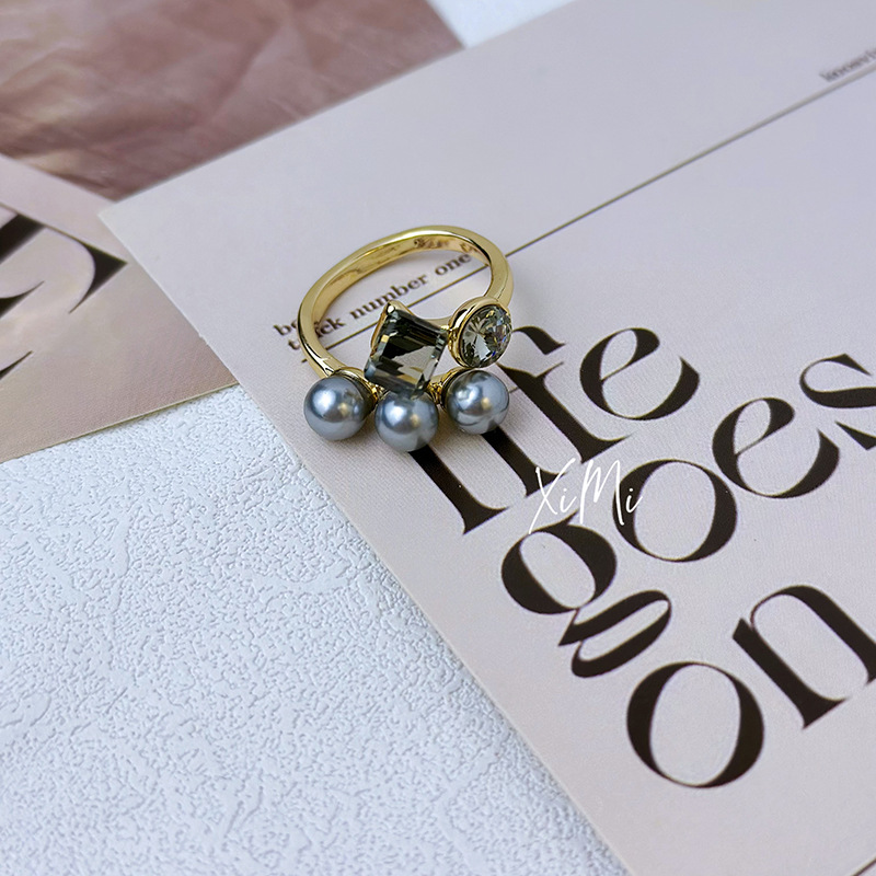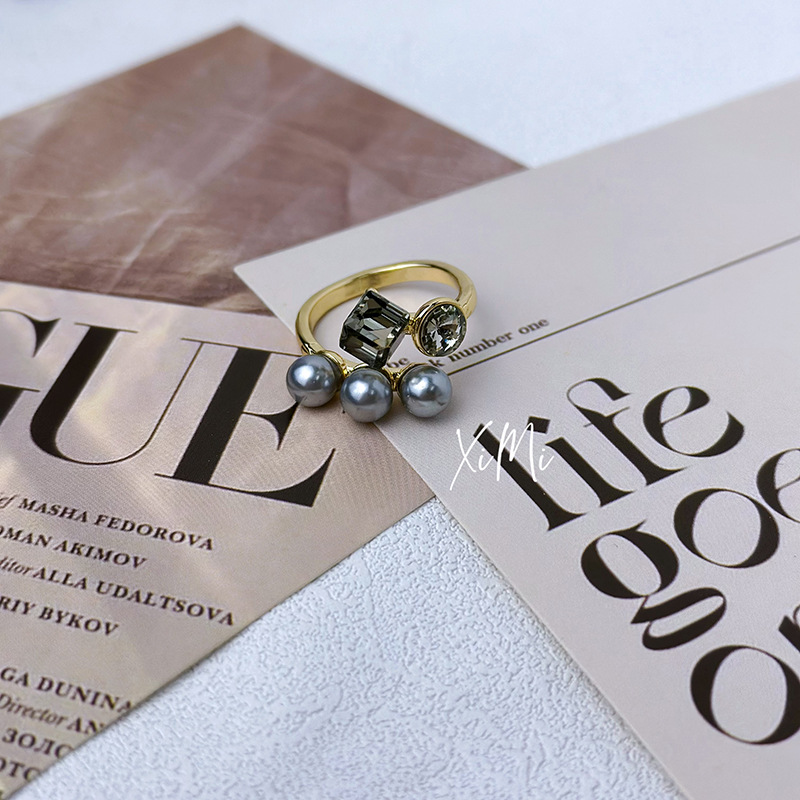 Pearl open ring female niche design 2024 new popular mid-ancient fashion personalized index finger ring light luxury bracelet