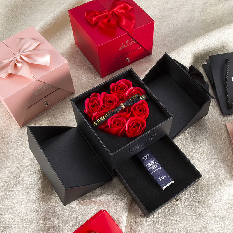 Specification model: Red flip-top rose gift box; universal inner pad for necklaces and rings
