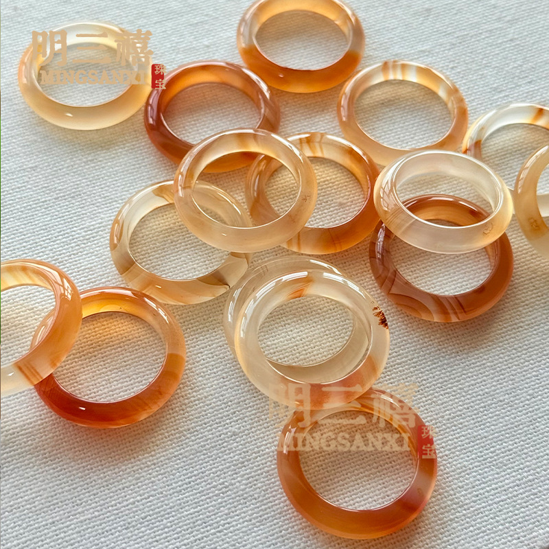Ice white chalcedony natural Brazil agate ring ring hand-held running ring jade chalcedony ring pair ring jade wholesale