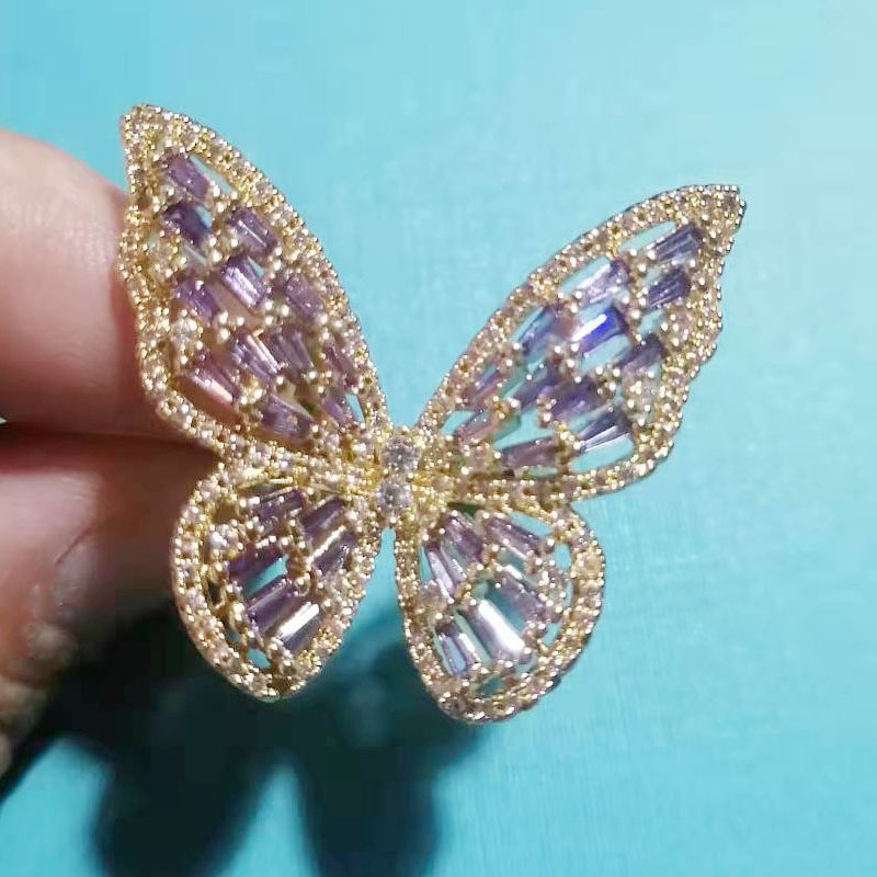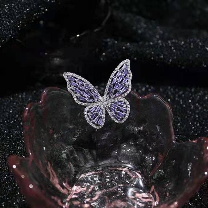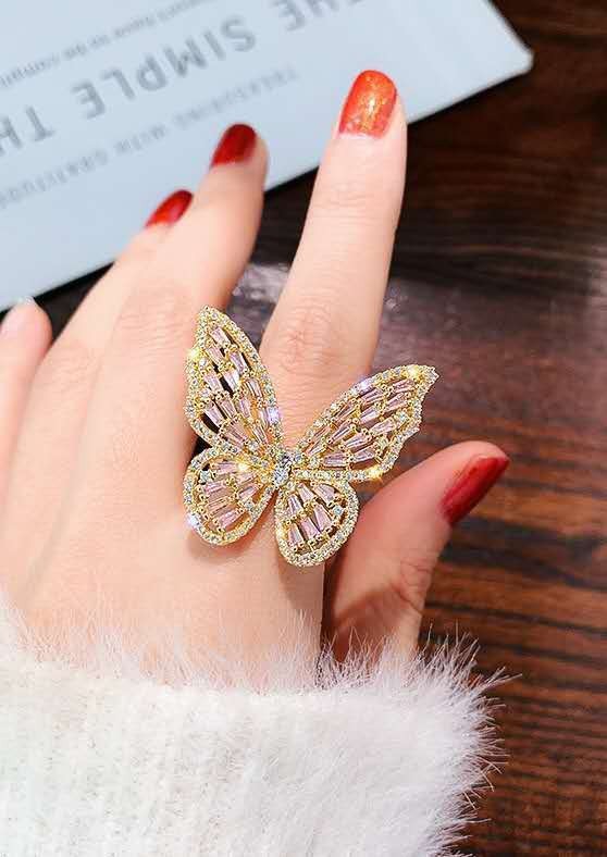 New product shake sound explosion butterfly ring temperament flash drill opening food ring factory direct explosive 2024 new