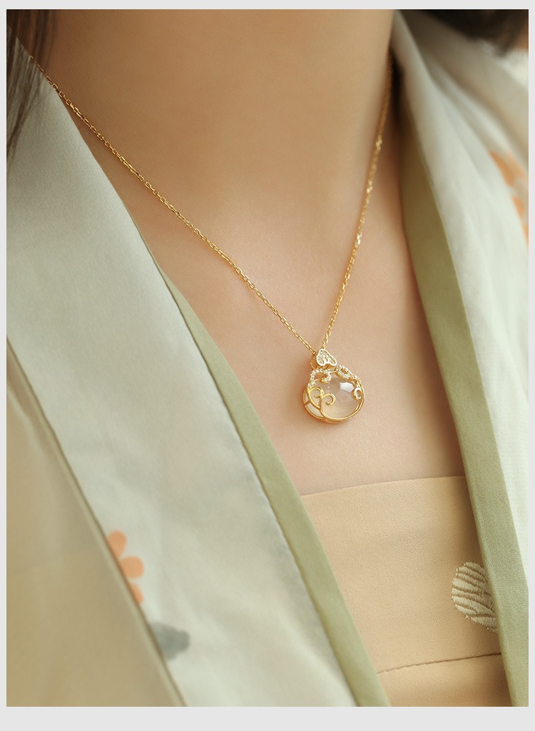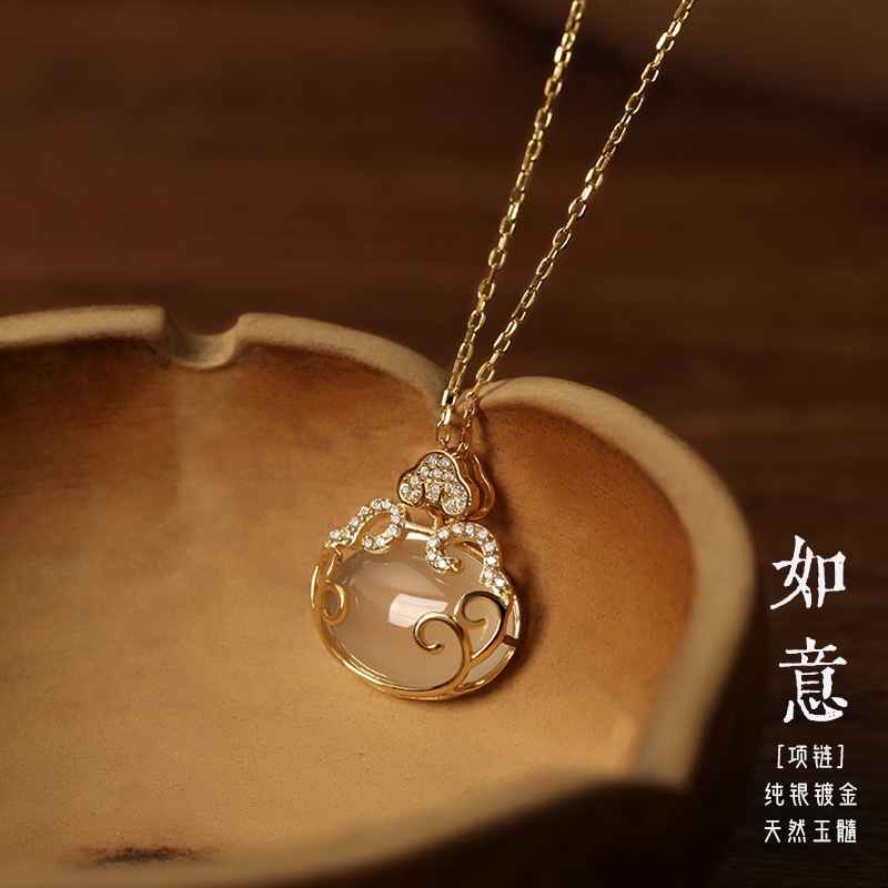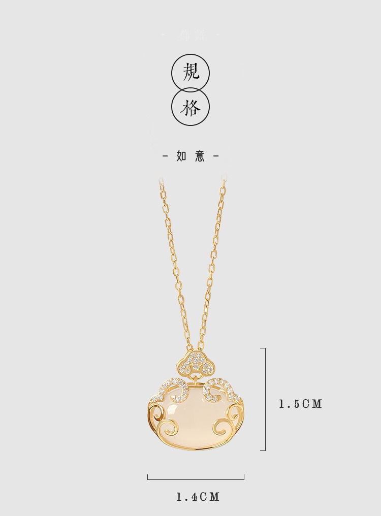 National fashion style white chalcedony safe longevity lock necklace light luxury high-grade Ruyi plated pendant all-match clavicle chain necklace