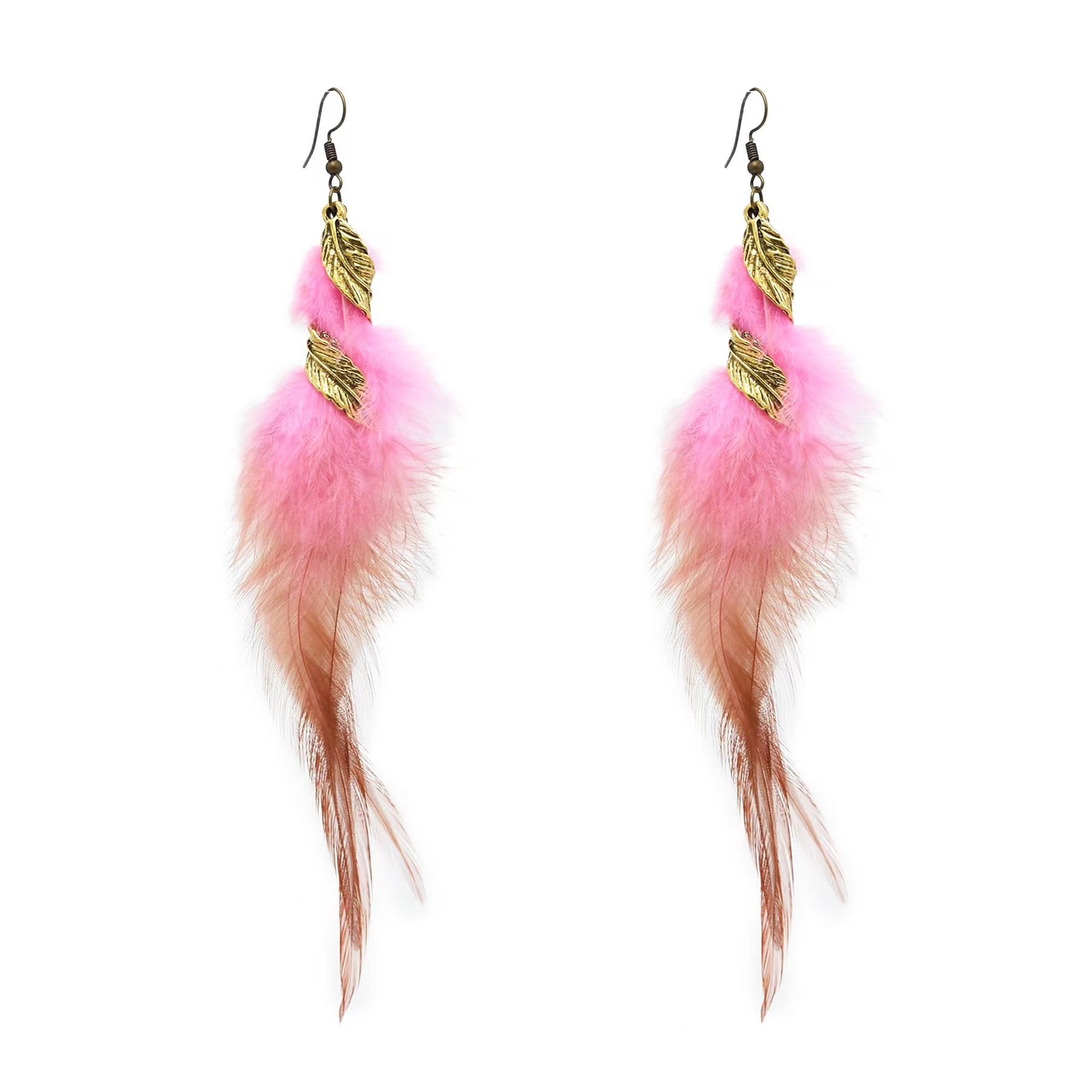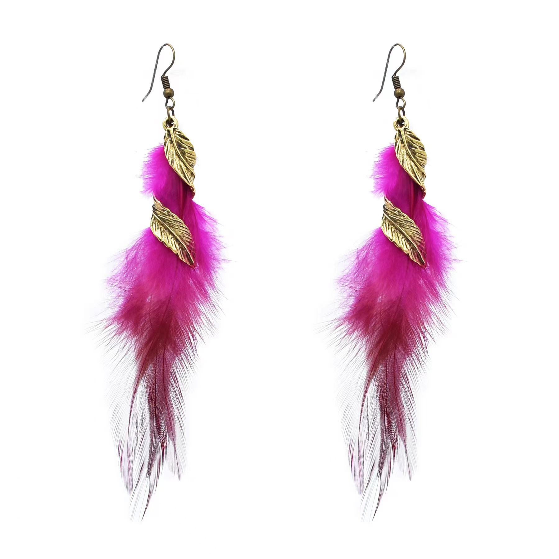 Bohemian Ethnic Style Earrings Feather Alloy Ear Hook Long Slim Jewelry Personalized Multi-color Optional Jewelry