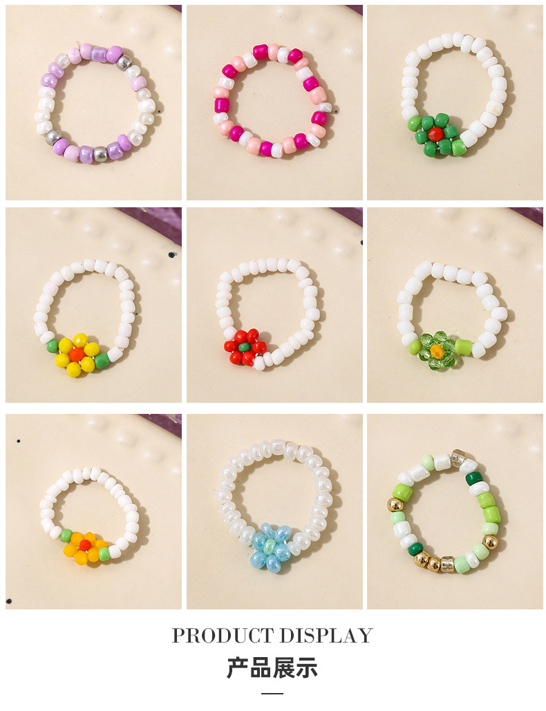 Rice Bead Ring Hyuna Style Flower Ring Japanese and Korean Jewelry Colorfulful Braided Flower Bohemian Index Finger Girl Tail Ring