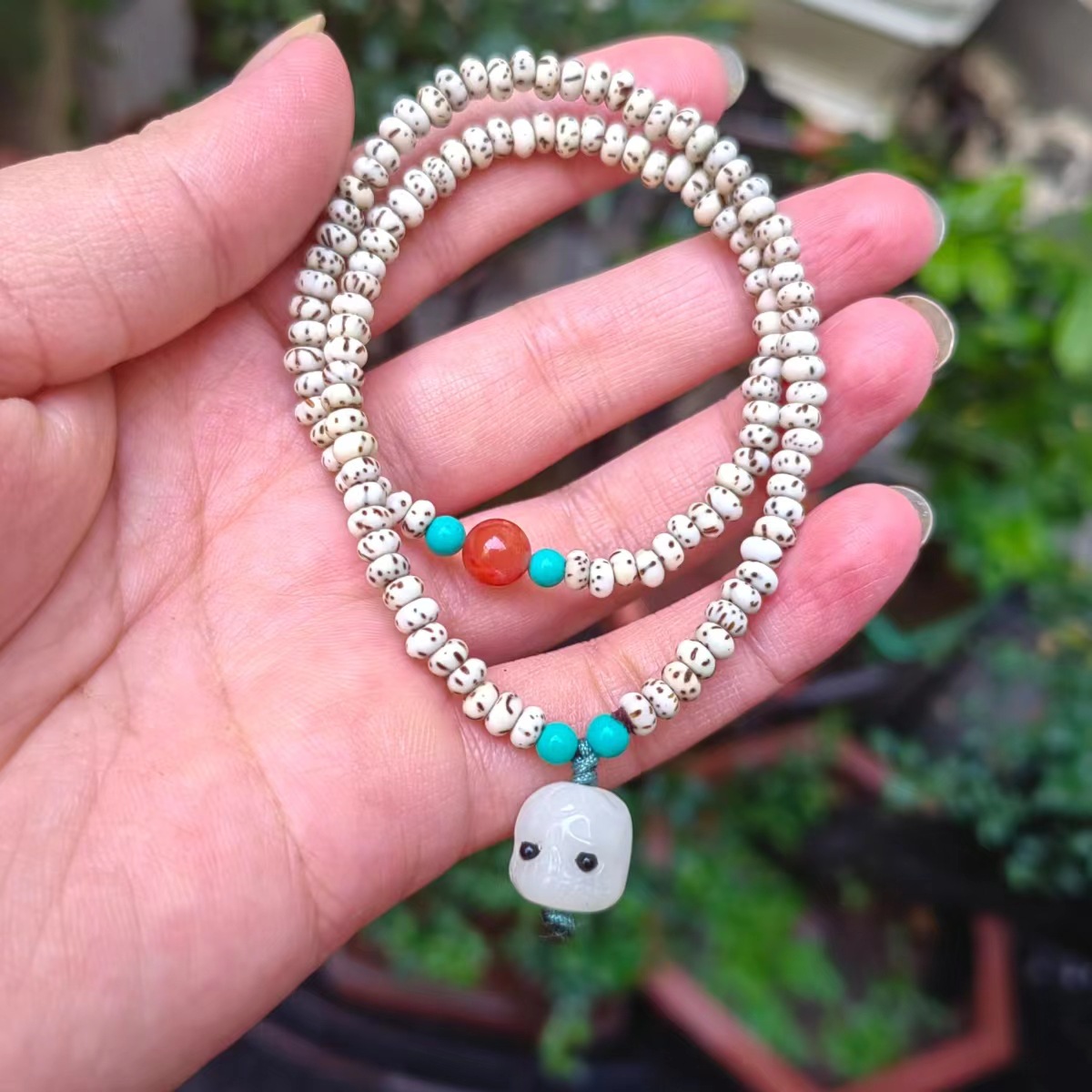 Color: 5x3mm smooth white + cinnabar zodiac snake (2 circles)