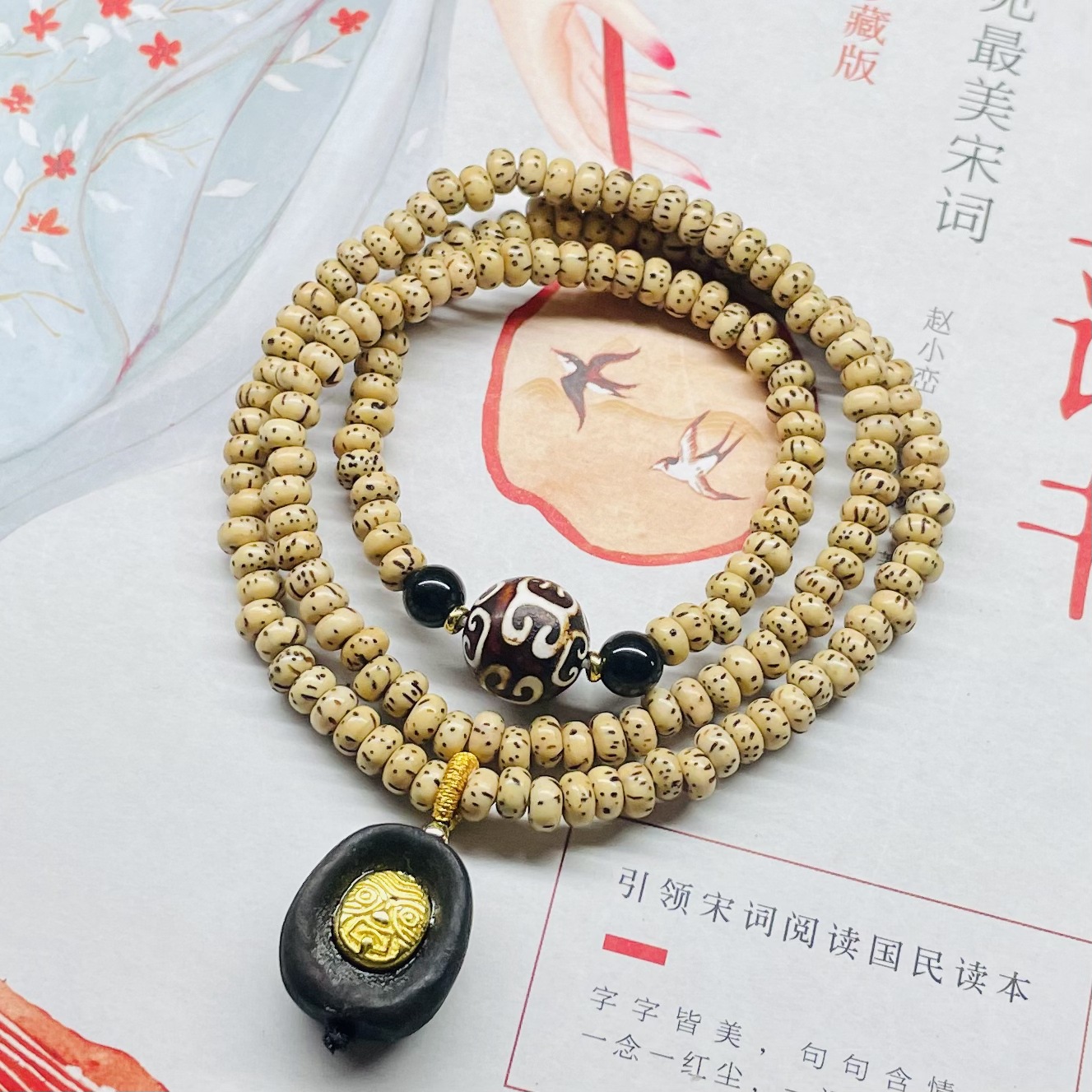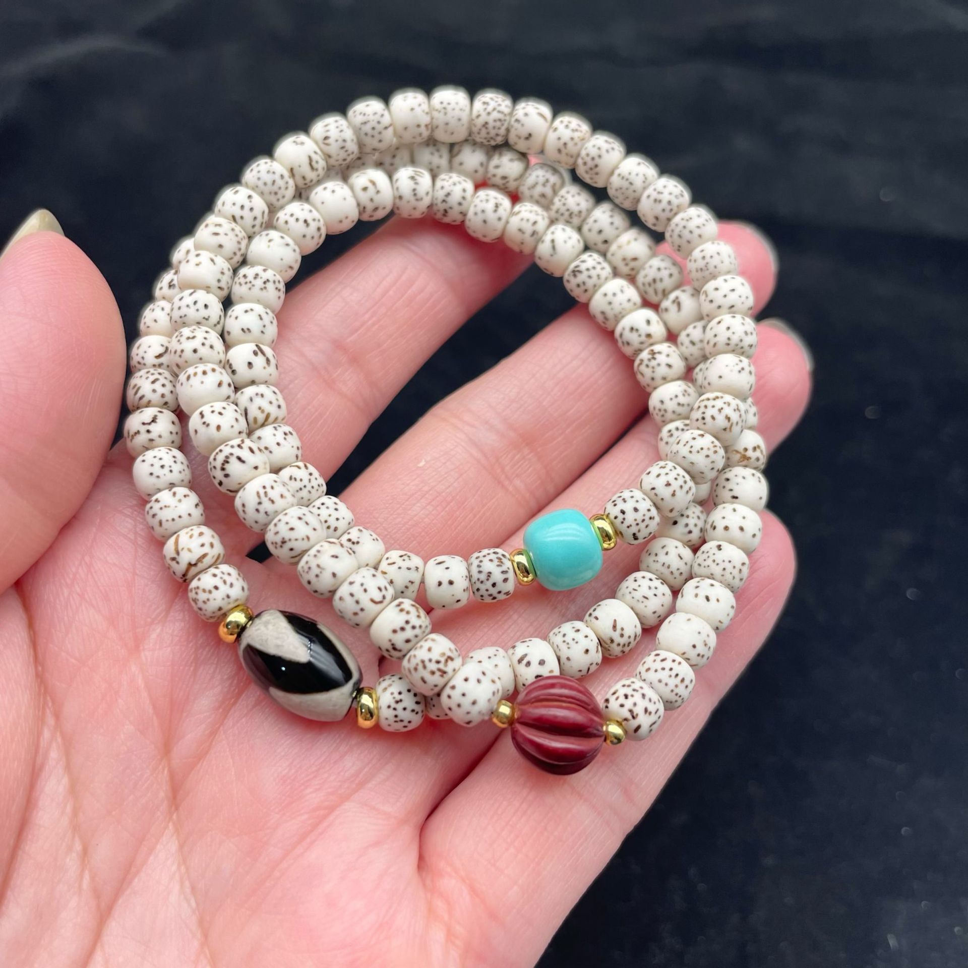 Color: 3x5mm gold seeds + dzi beads (4 circles)