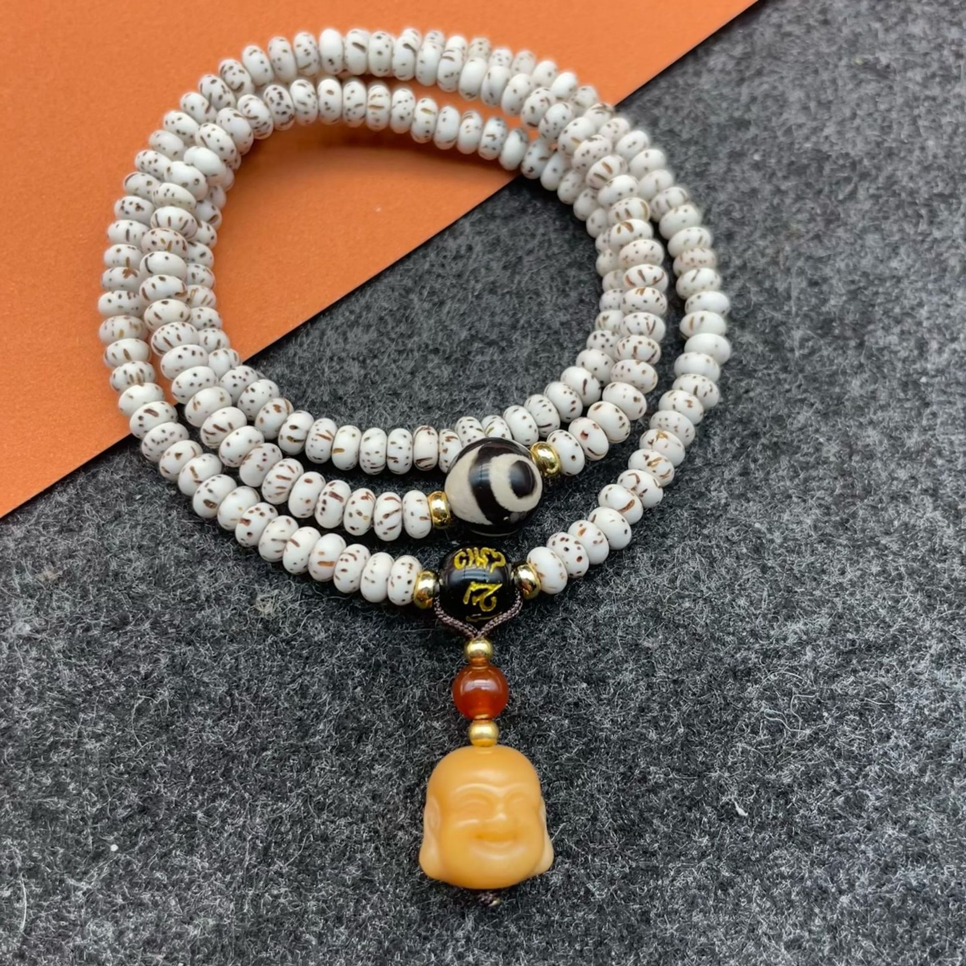 Color: 5x3mm smooth white weathered maitreya (3 circles)
