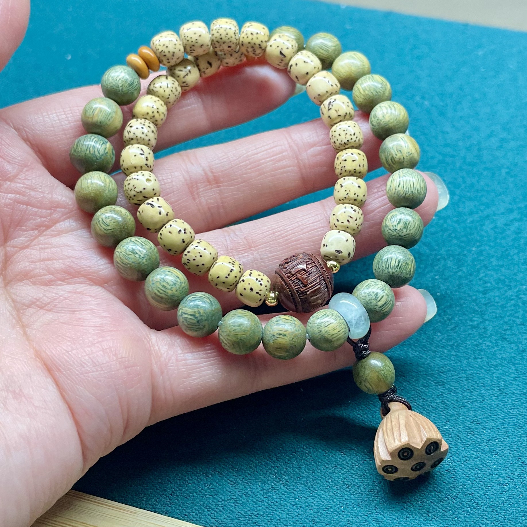 Color: 7x6mm gold seed green sandalwood double spell (2 circles)
