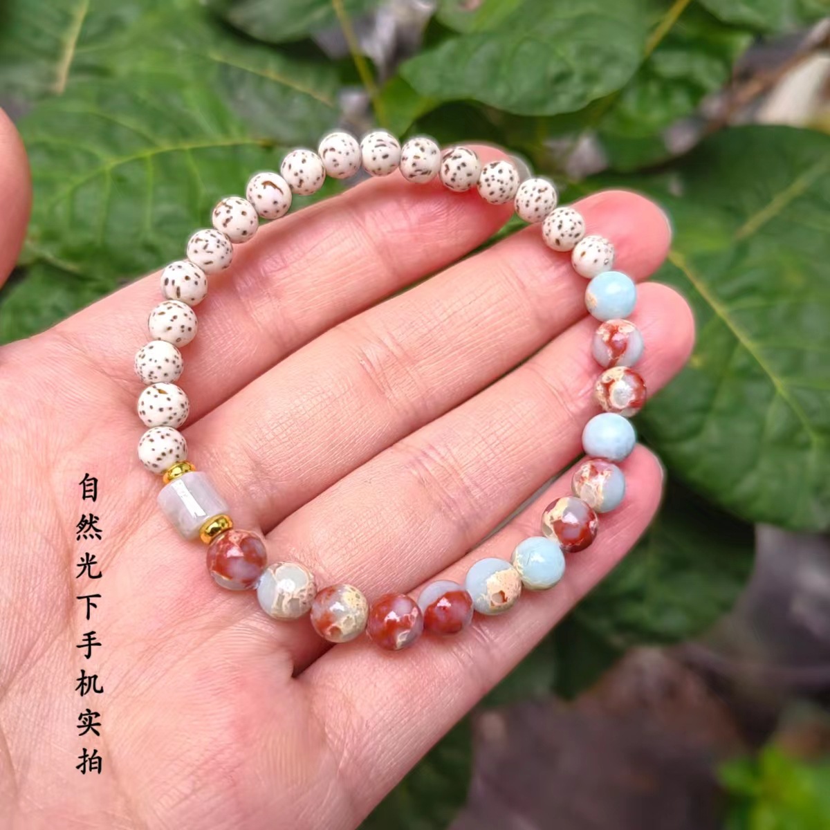 Color: 5x3mm smooth white + cinnabar gourd 2 (4 circles)