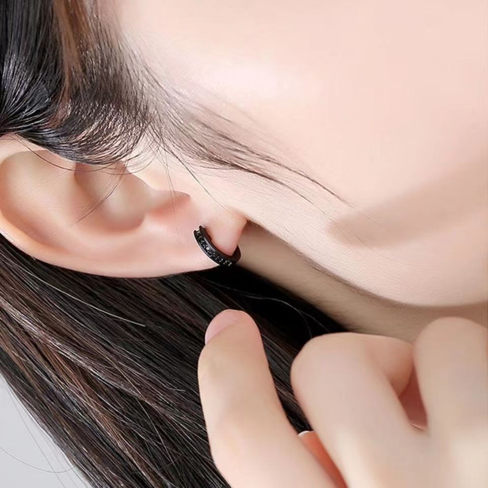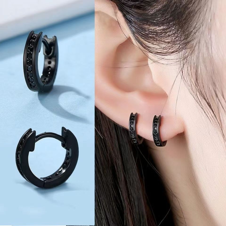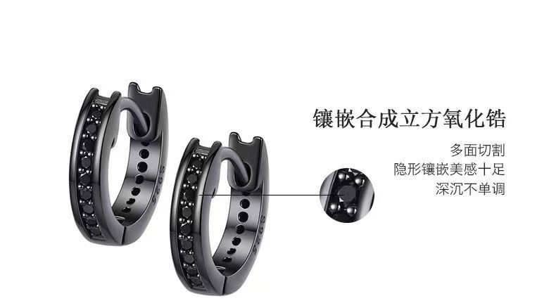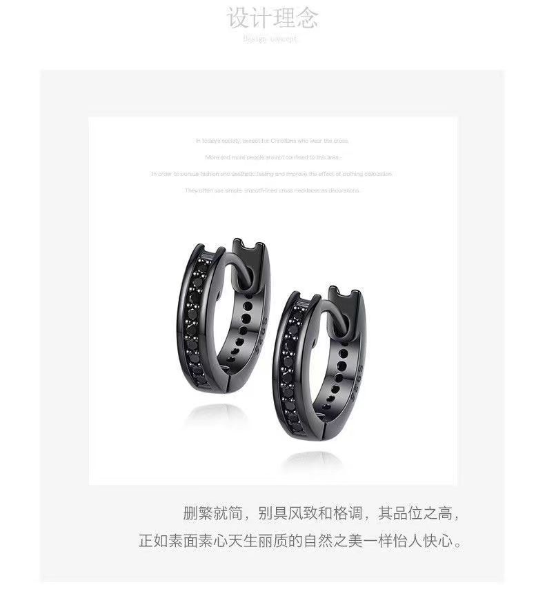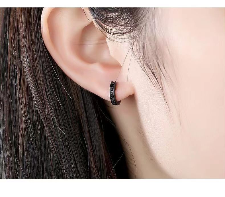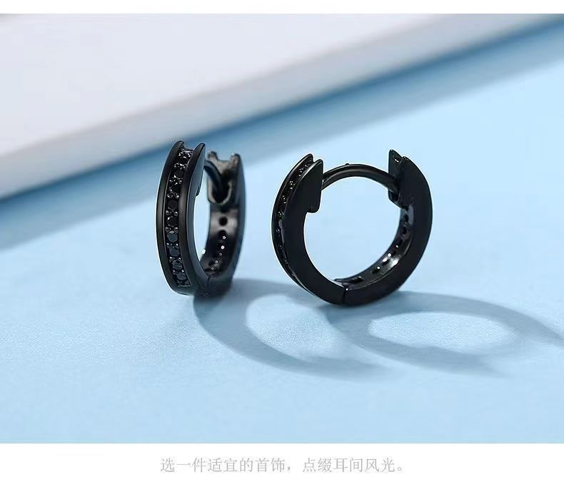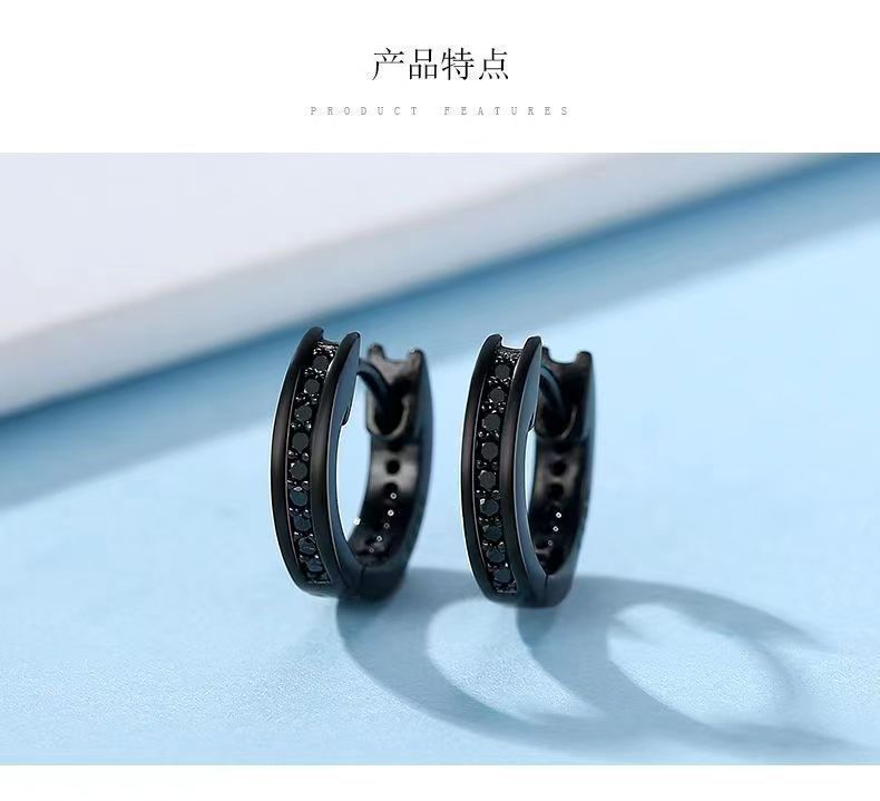 Mingjie black earrings women's earrings ear buckle Boys single earrings new Korean style personalized trendy earrings