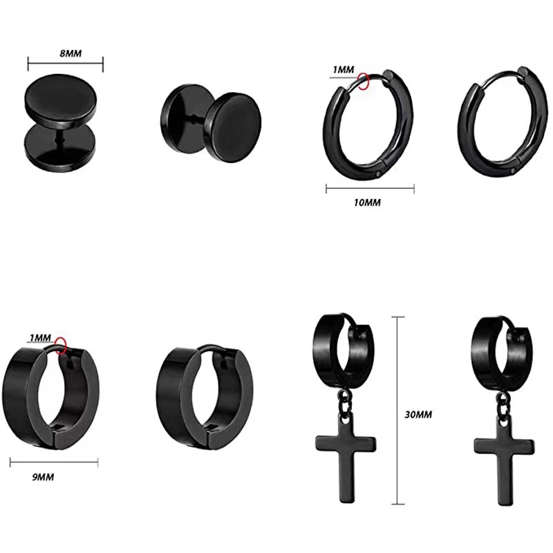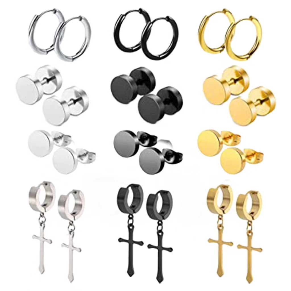 Wholesale stainless steel earrings suit Amazon Men's earrings personality dumbbell black earrings cross-border hot sale suit