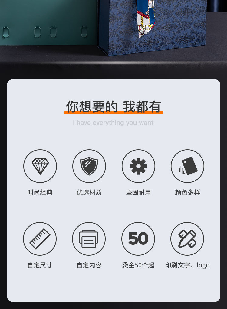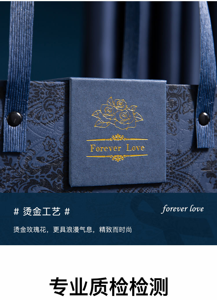 Specification model: Elegant blue pattern + raffia + greeting card; Small size 18*13*6.5