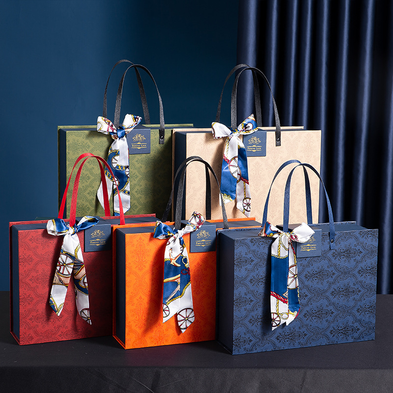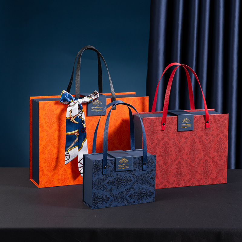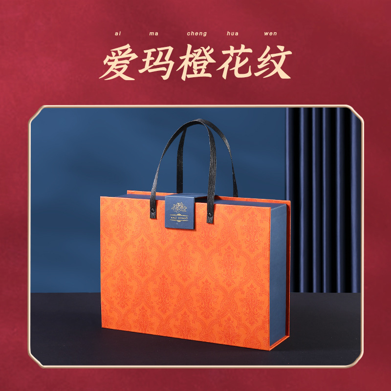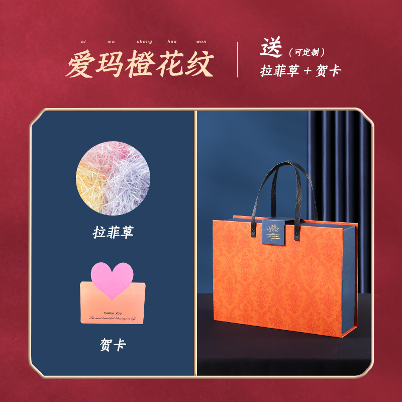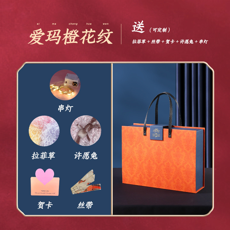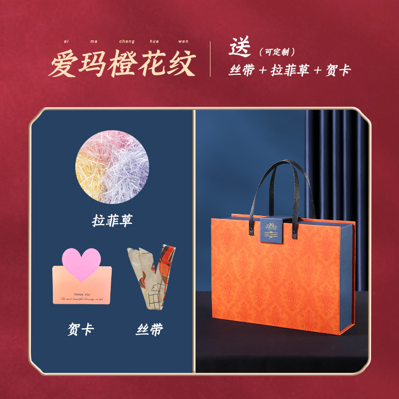 Specification model: Emma orange pattern + silk scarf + raffia + greeting card; Small size 18*13*6.5