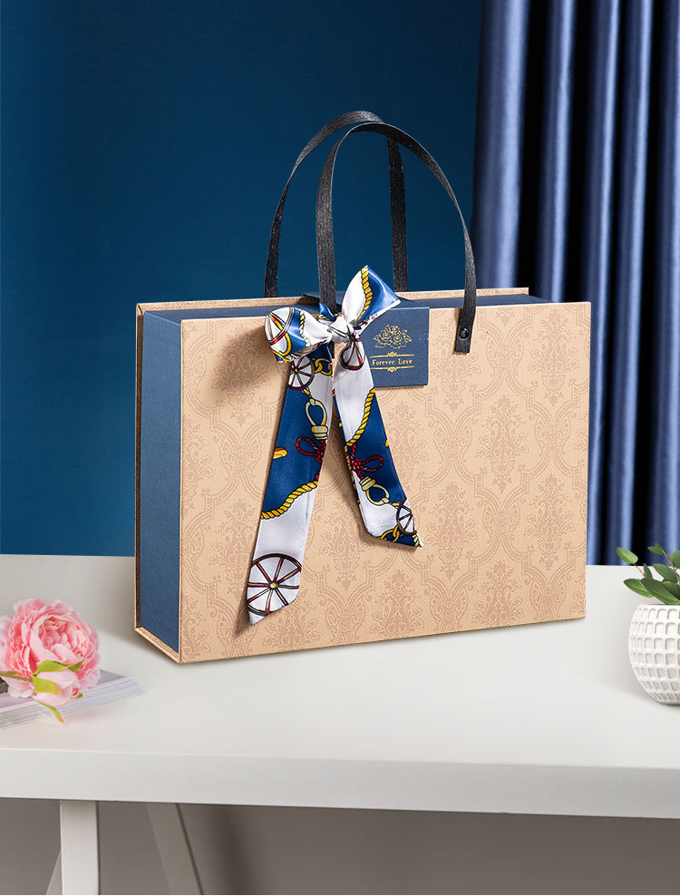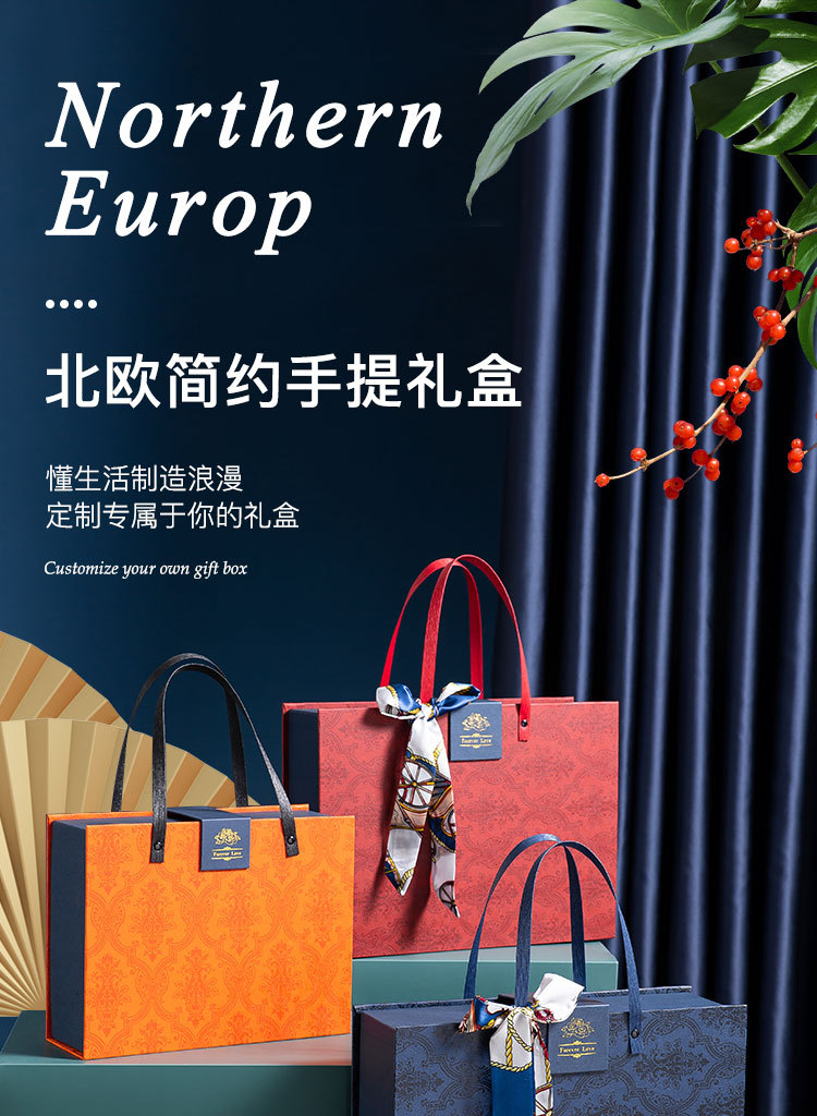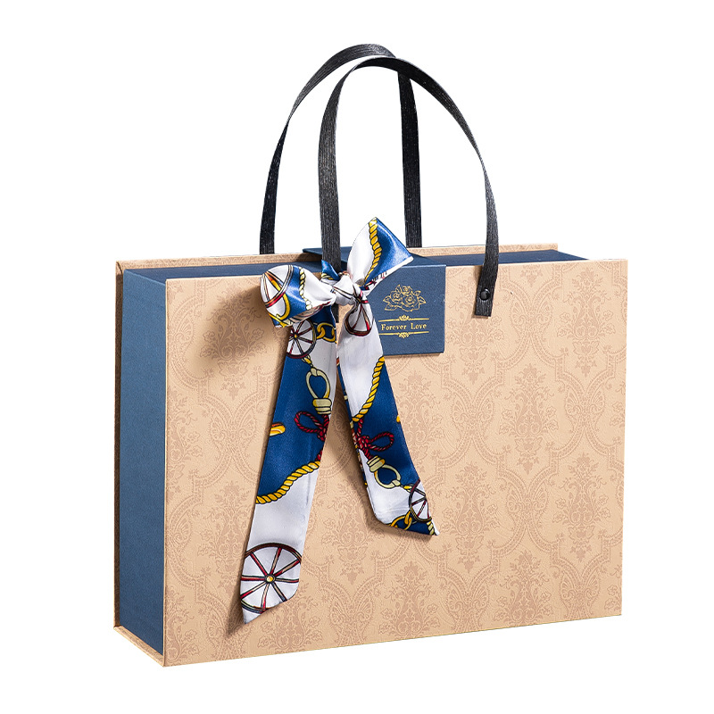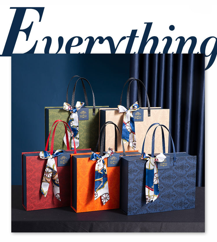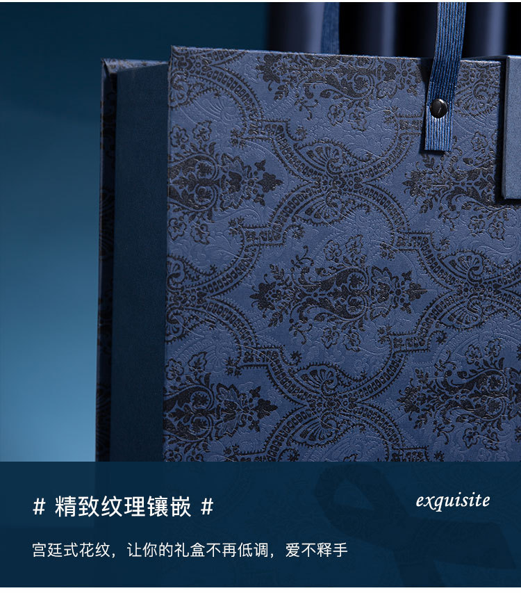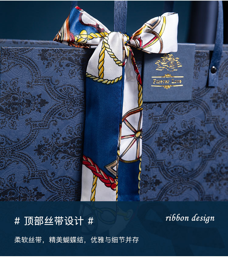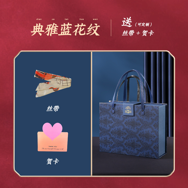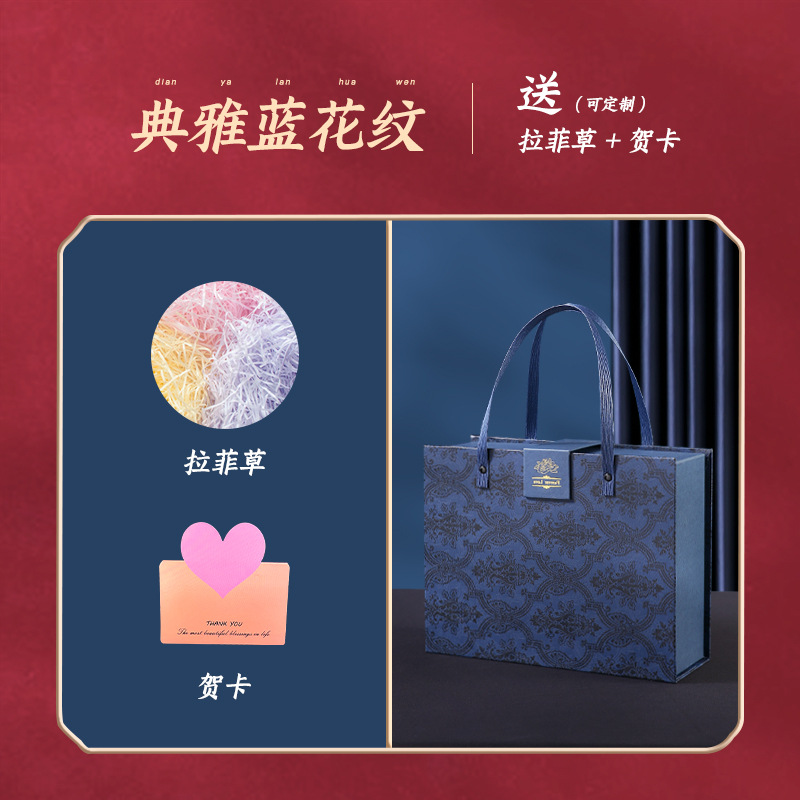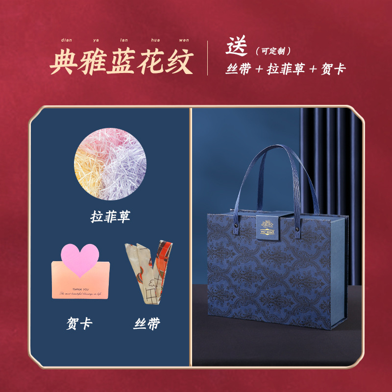 Specification model: Elegant blue pattern + raffia + silk scarf + greeting card; Large size 34*25 * 9.5cm