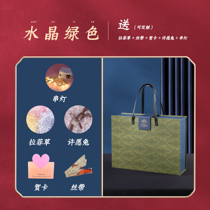 Specification model: Crystal Green + raffia + silk scarf + wishing rabbit + Lantern + greeting card; Medium size 26*21 * 9cm