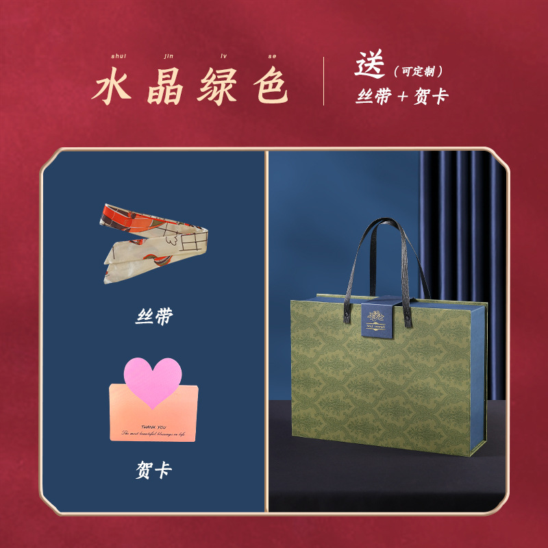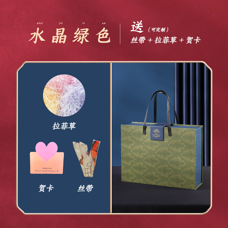 Specification model: Crystal Green + silk scarf + raffia + greeting card; Large size 34*25 * 9.5cm