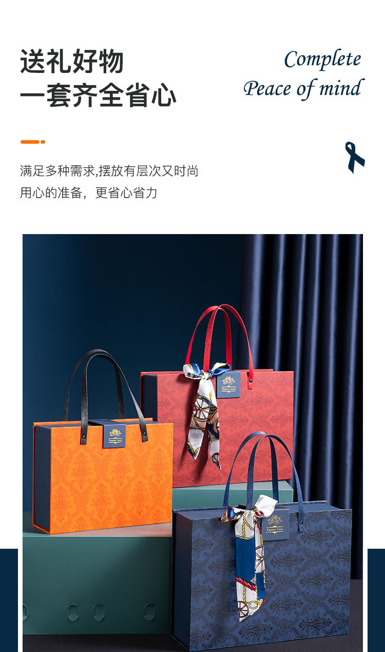 Specification model: Emma orange pattern + silk scarf + raffia + greeting card; Large size 34*25 * 9.5cm