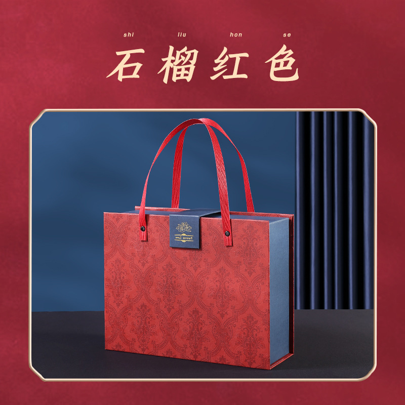 Specification model: Pomegranate red + silk scarf + raffia + greeting card; Small size 18*13*6.5