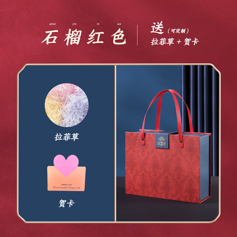 Specification model: Pomegranate red + silk scarf + raffia + greeting card; Large size 34*25 * 9.5cm