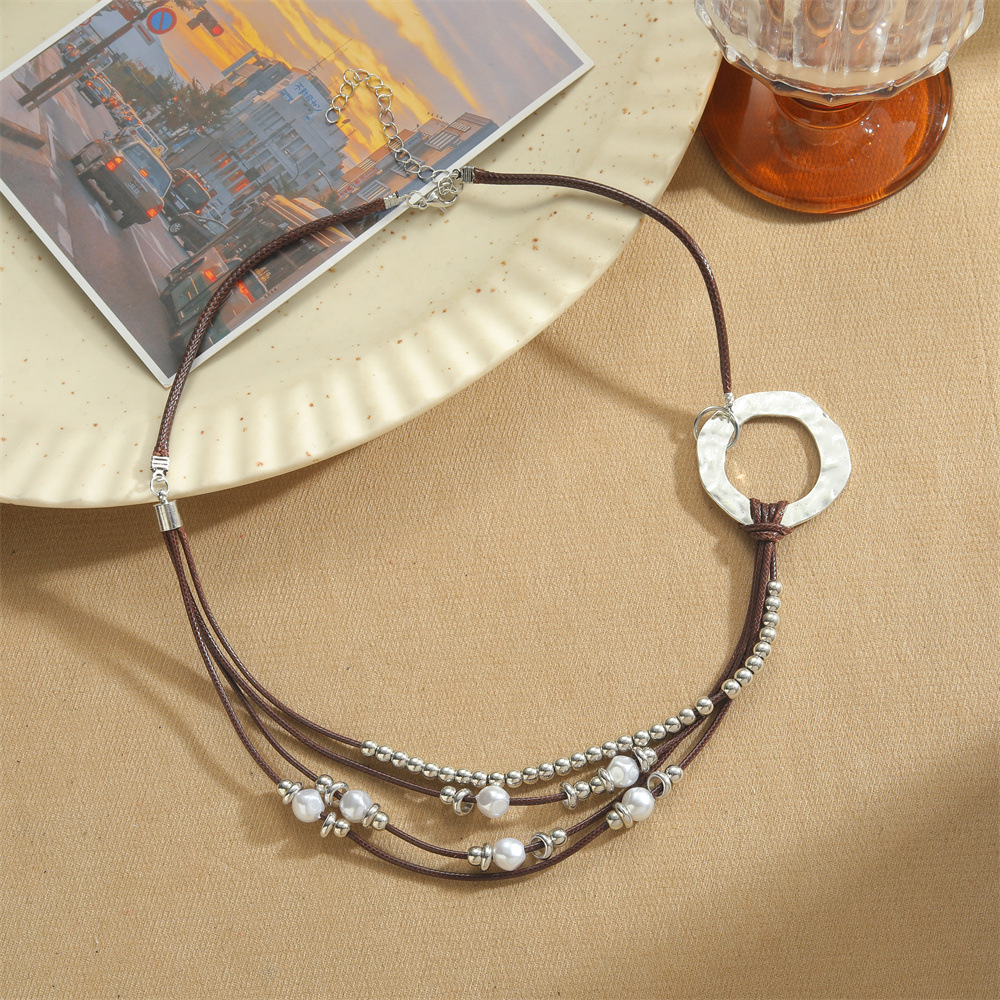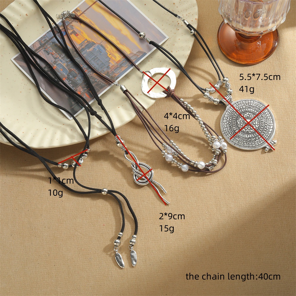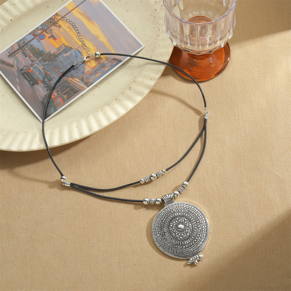 【品名】跨境新款欧美复古风百搭个性圆盘合金吊坠锁骨链夸张大气项链饰品
