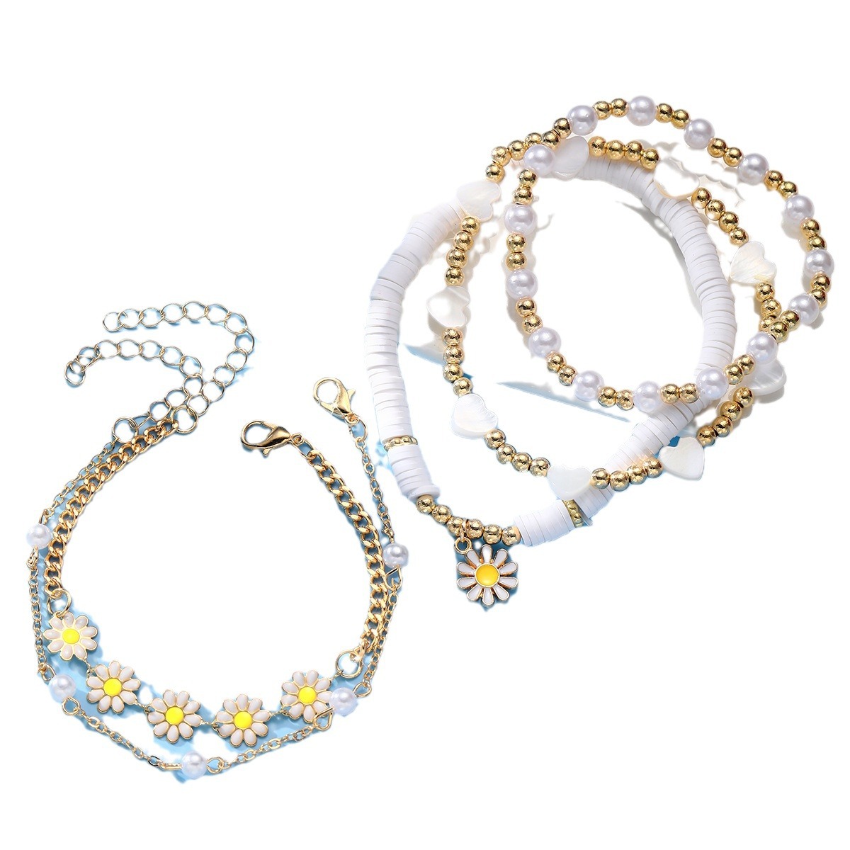 European and American style new fashion Daisy alloy five-piece bracelet butterfly alloy women's bracelet four-piece set suit