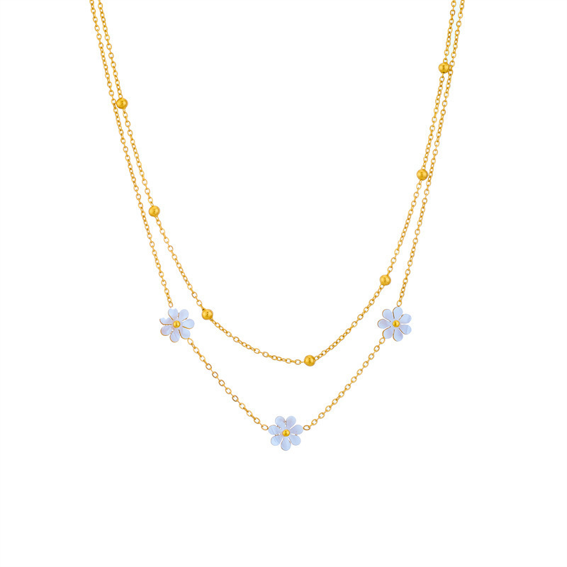 Color: Golden chrysanthemum white shell earrings double bracelet necklace A803-A801-A704