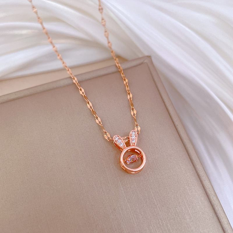 [Titanium Steel] Rabbit Ear Smart Light Luxury Elegant Gorgeous Diamond Necklace Women's All-match Clavicle Chain Titanium Steel Chain
