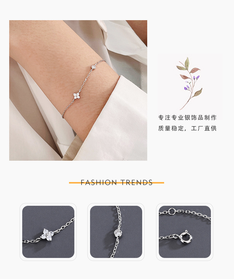 s925 sterling silver Clover bracelet women's fresh Mori creative Diamond-embedded bracelet elegant light luxury all-match jewelry fashion