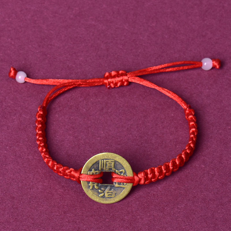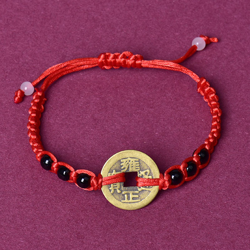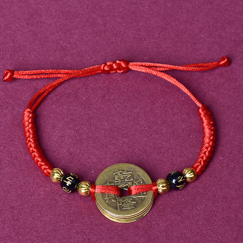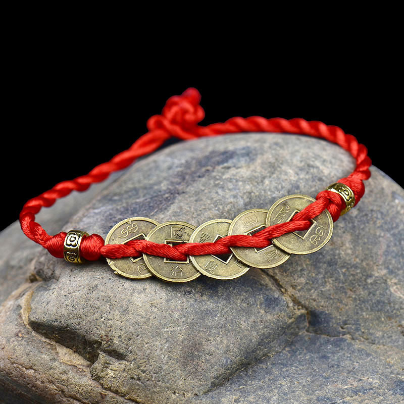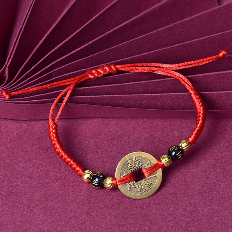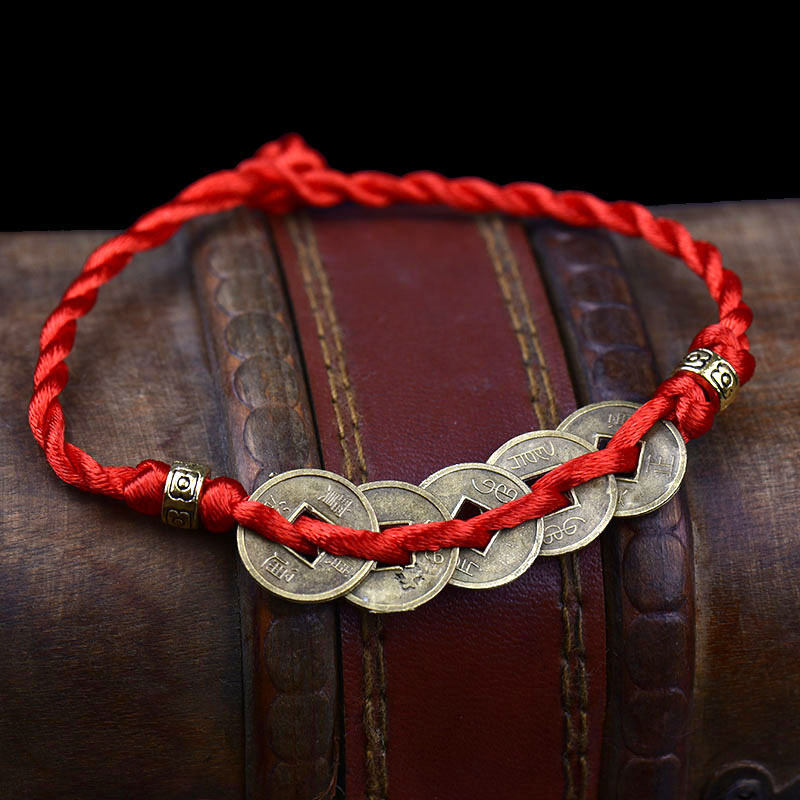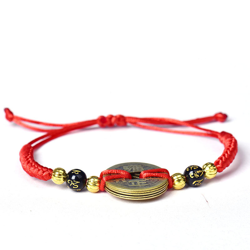 Pure Copper Six-Character Mantra for Men and Women, Copper Coin Hand-Woven Red Rope Bracelet, Five Emperors Coin Red Rope Bracelet