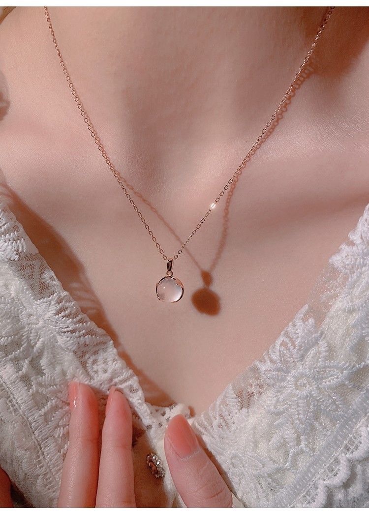 Color: XL233-pink crystal four-leaf clover necklace "rose gold]