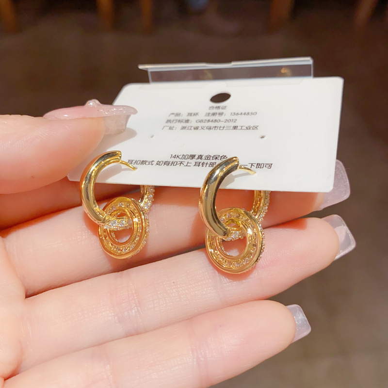 Color: Two full zirconium double-ring ear buckles (thick real gold color retention)