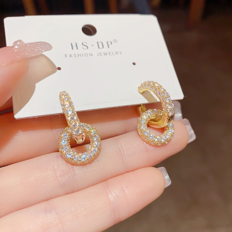 A two-wear full of zirconium double-ring ear buckle 2024 new fashion temperament fashion Joker niche design earrings