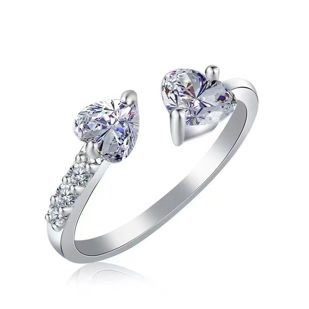 Cross-Border Heart-Shaped Zircon Ring for Women, Niche Design, Simple and Versatile Finger Jewelry, Non-Fading, Ins-Style