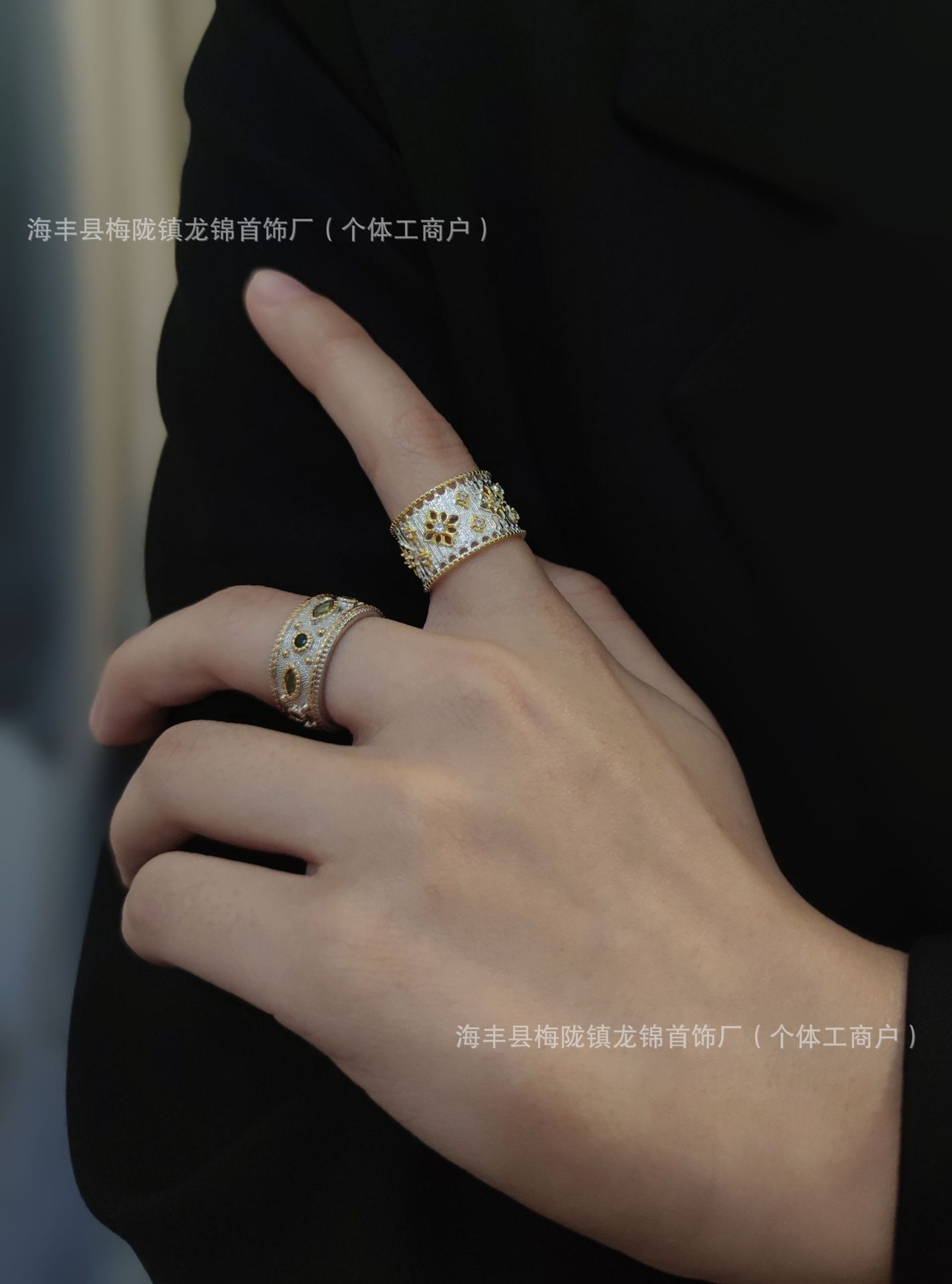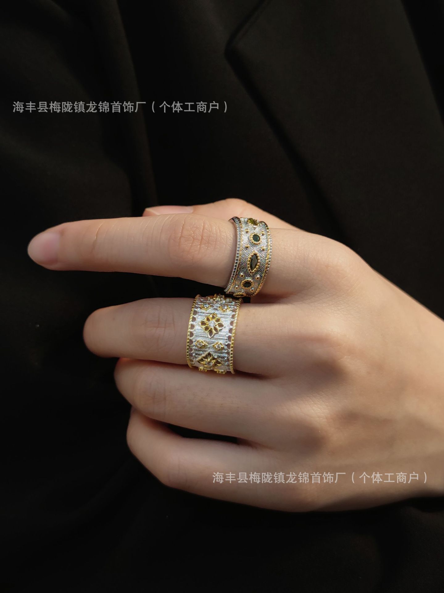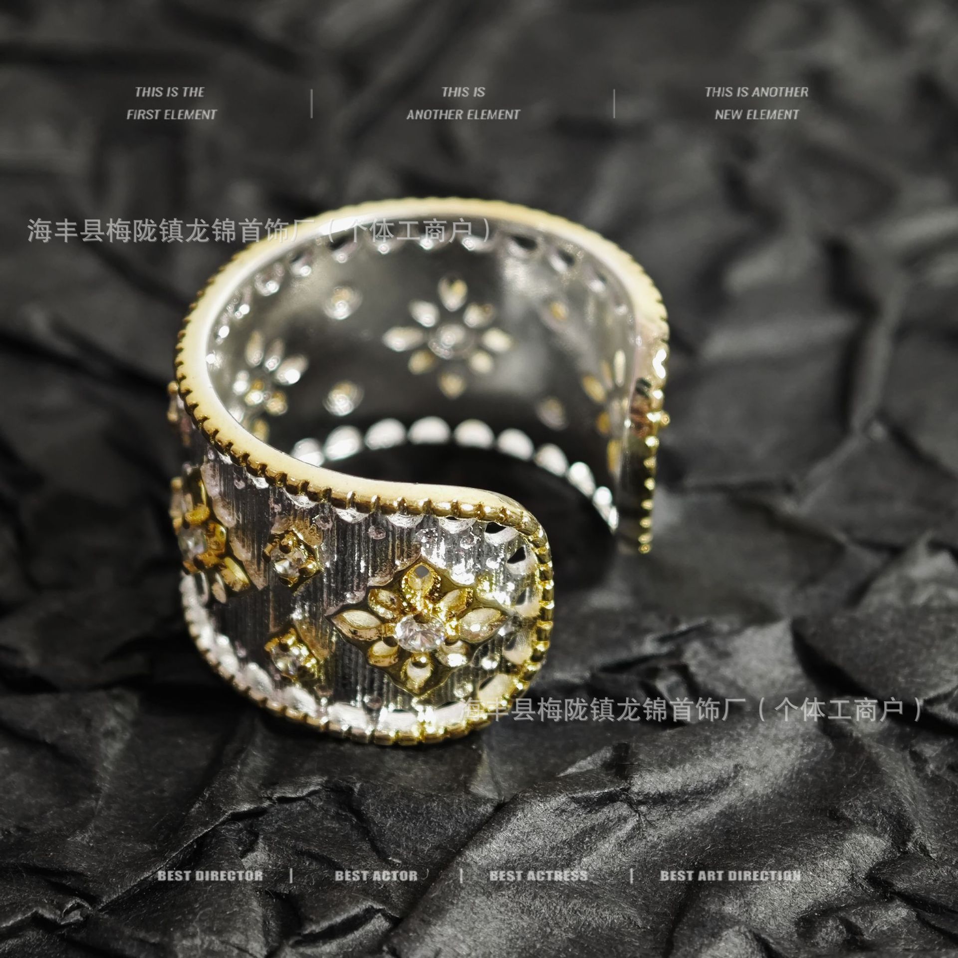 Cloth qi Lati Italy imported cloth woven snowflake ring men's and Women's Open ring carved gold craft retro Court