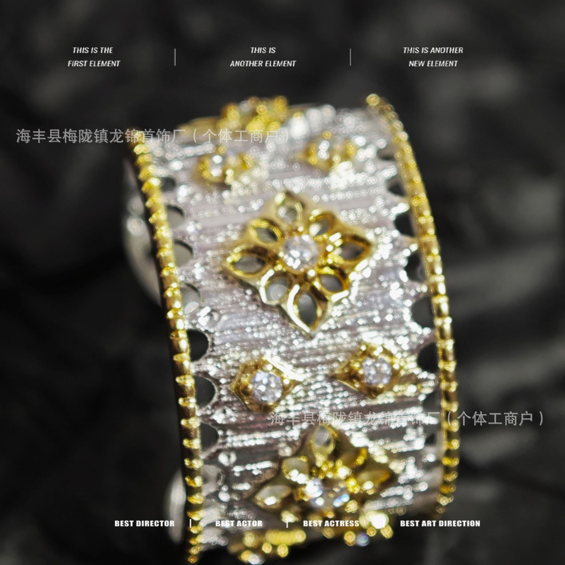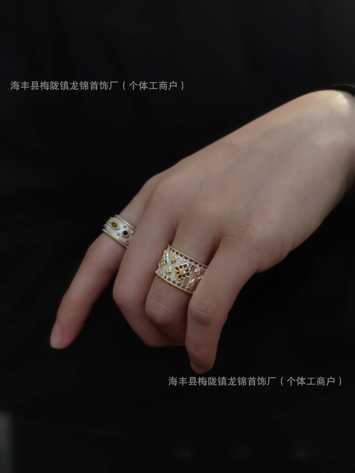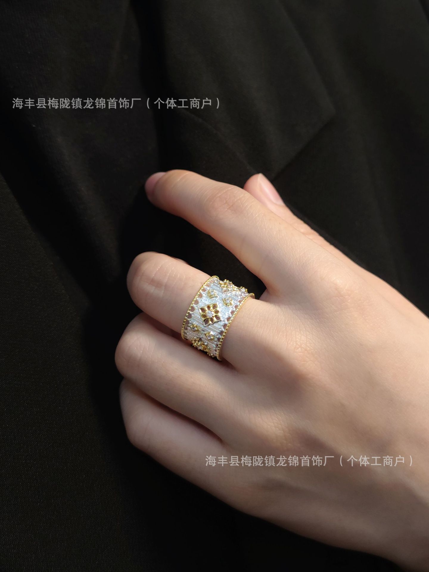 Cloth qi Lati Italy imported cloth woven snowflake ring men's and Women's Open ring carved gold craft retro Court