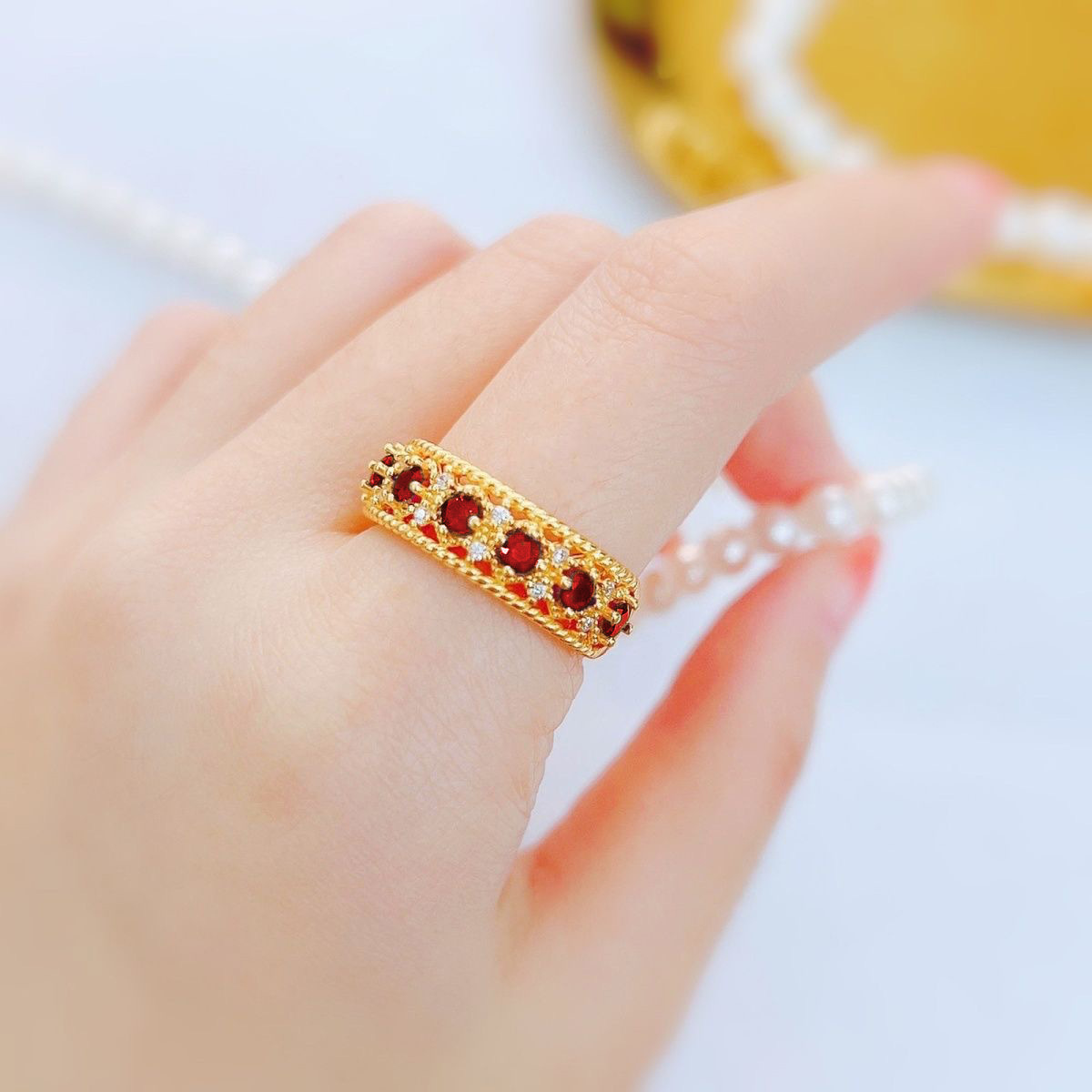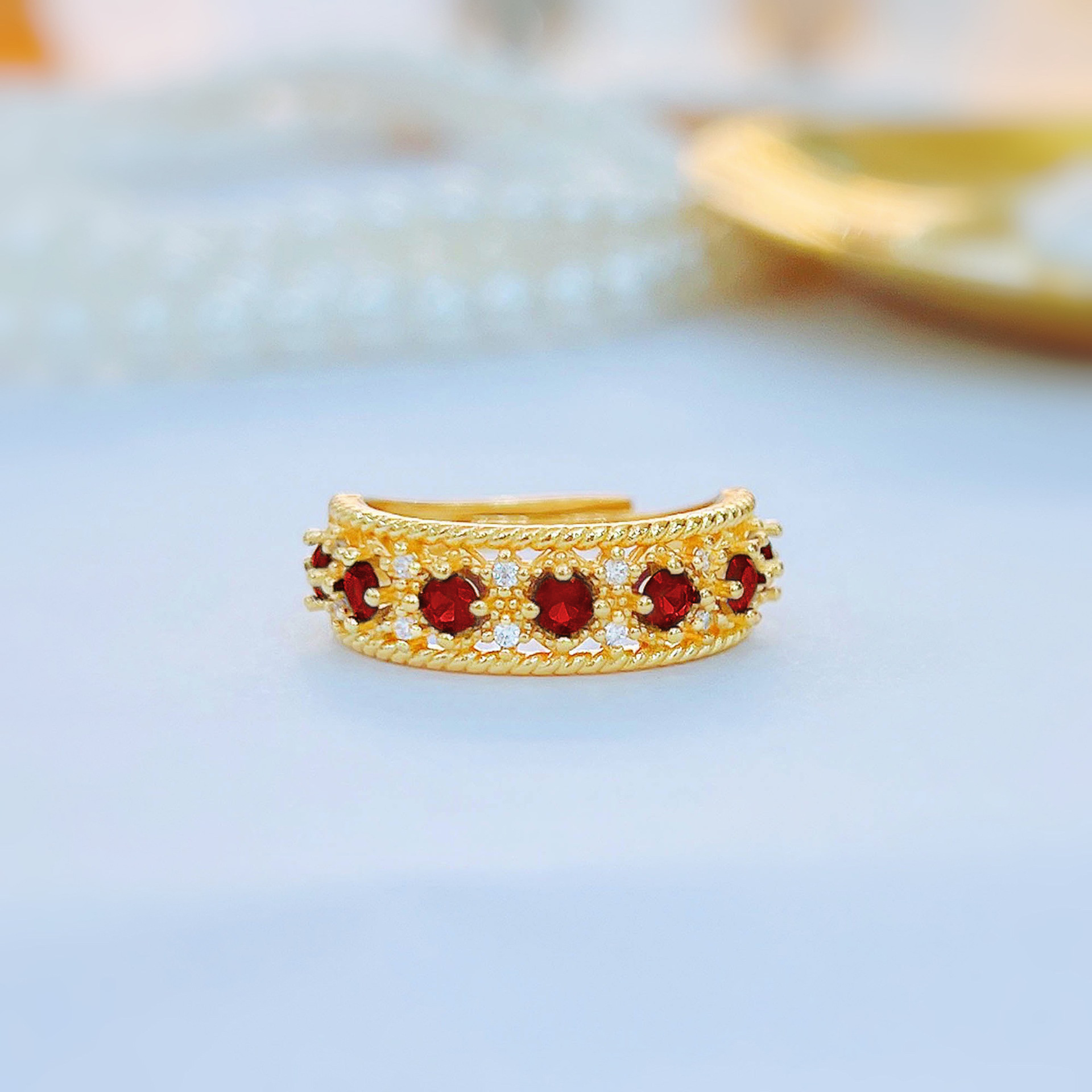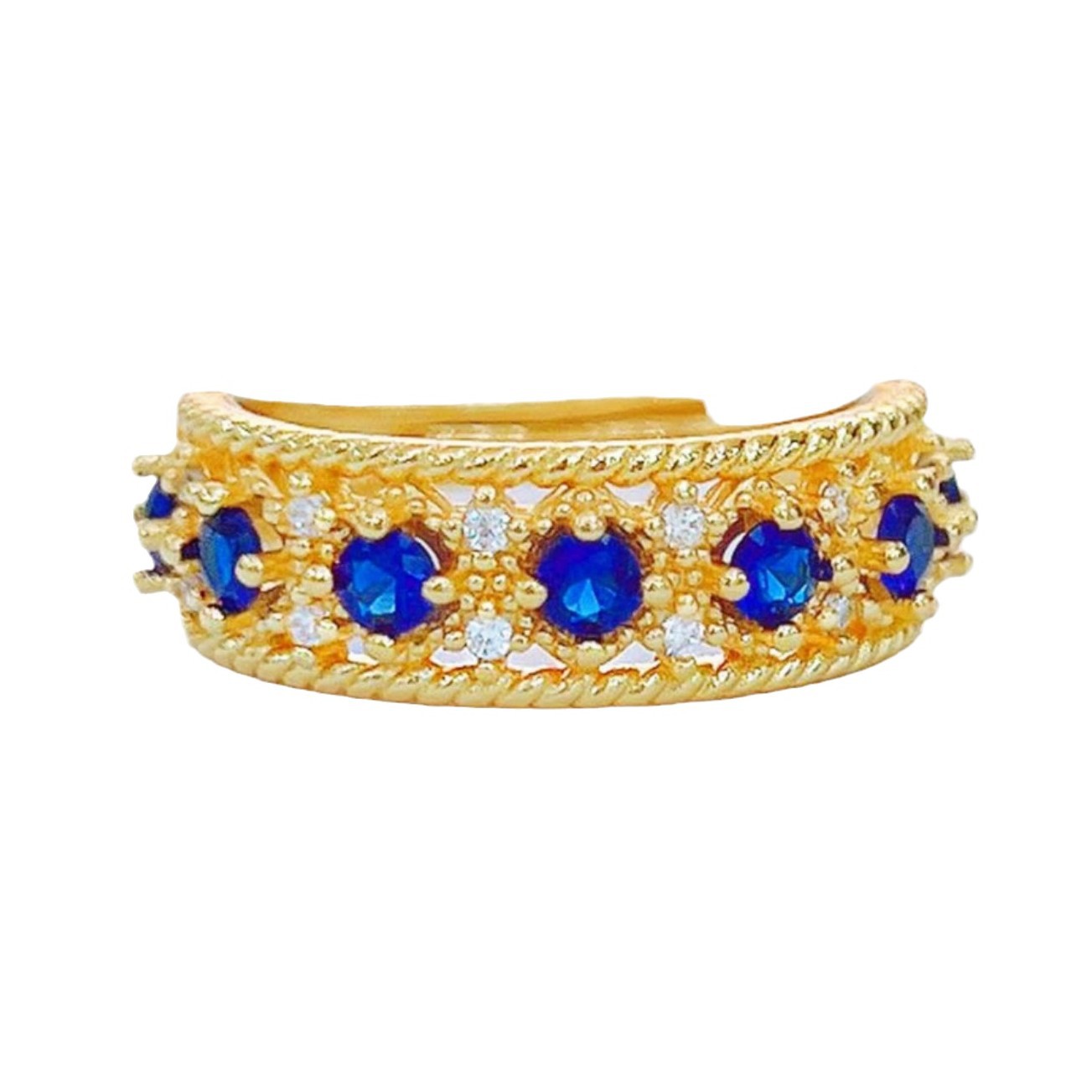 Italian retro palace style lace craft row ring Blue Red Green pointed crystal high carbon diamond open ring for women
