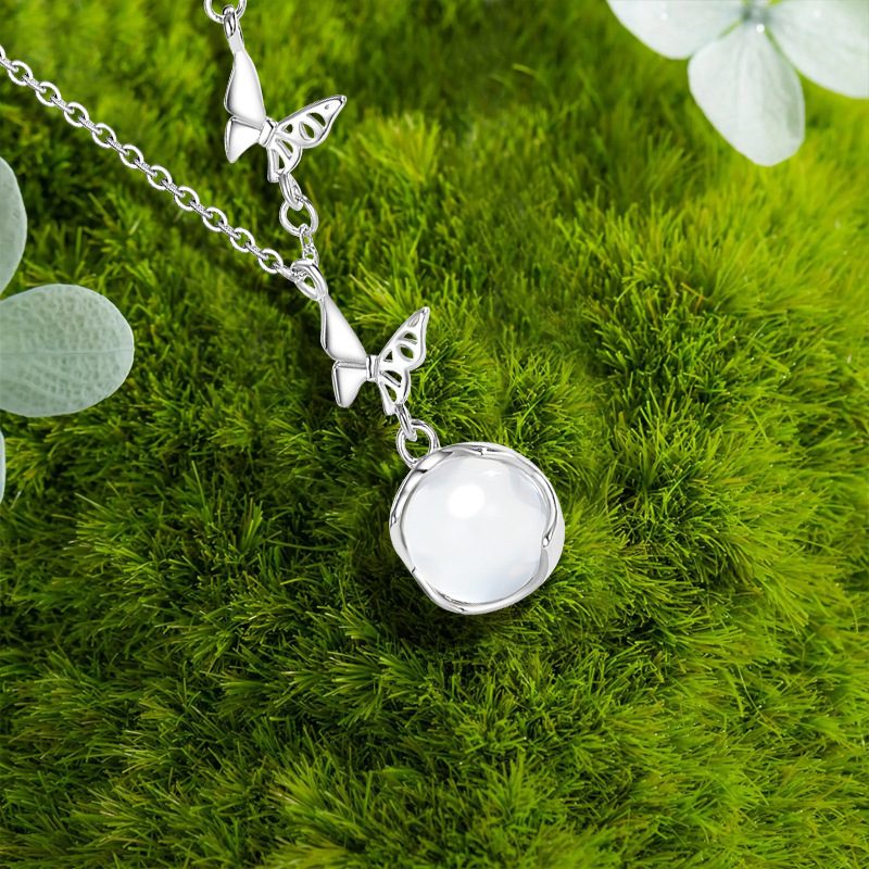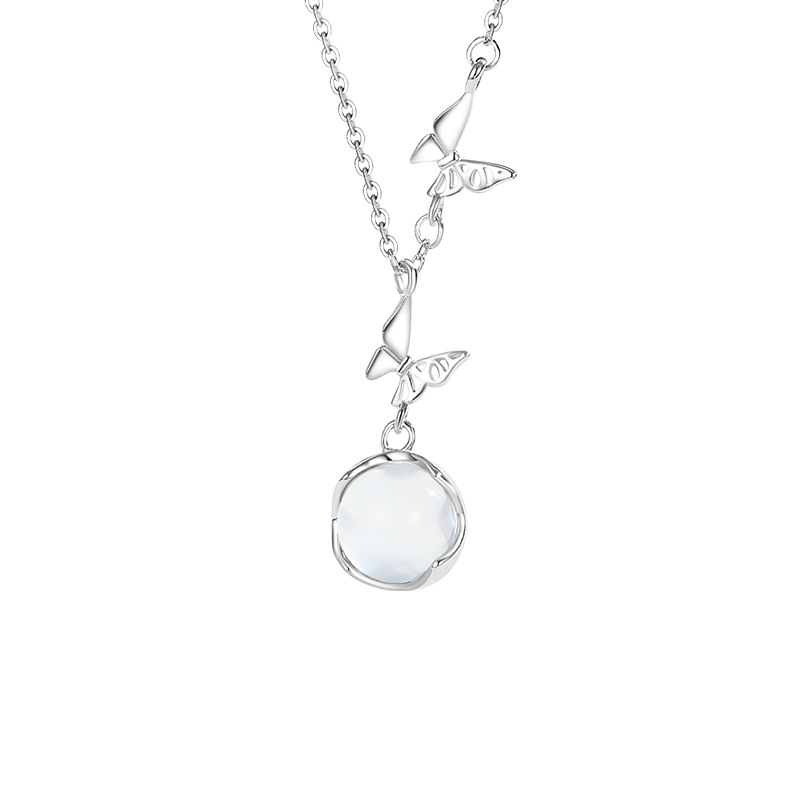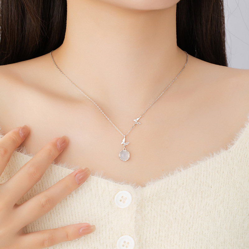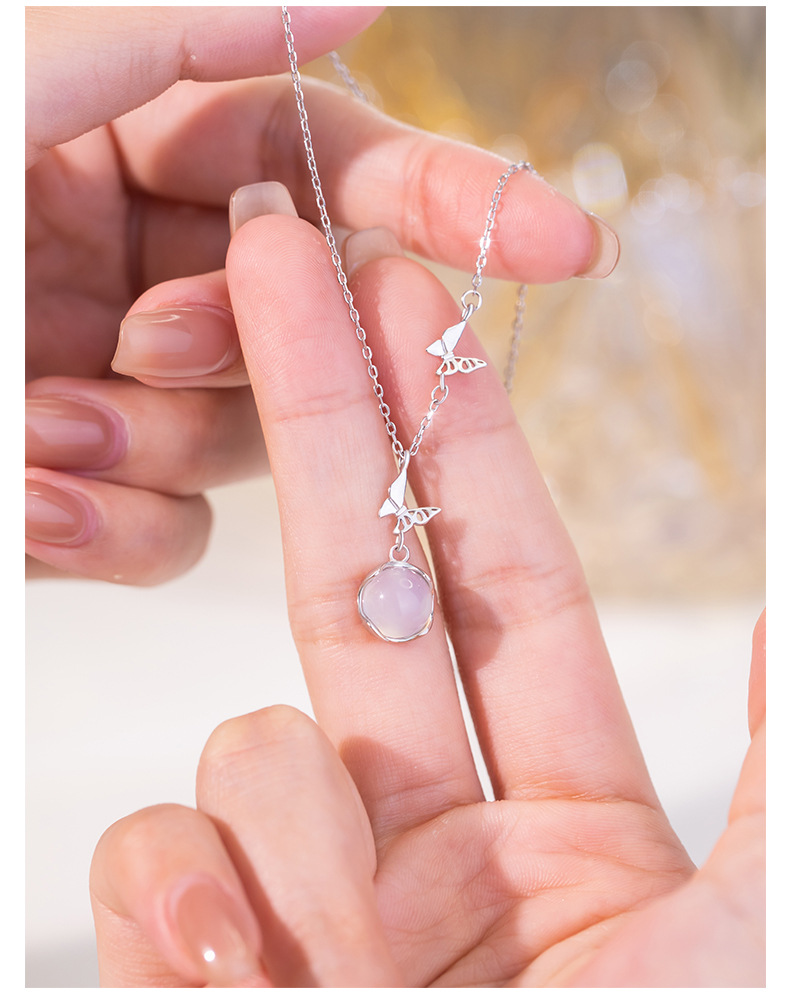 Original Butterfly Foot Silver 999 Necklace Female Niche Design Light Luxury Chalcedony Clavicle Chain Ins Style Flower Pendant