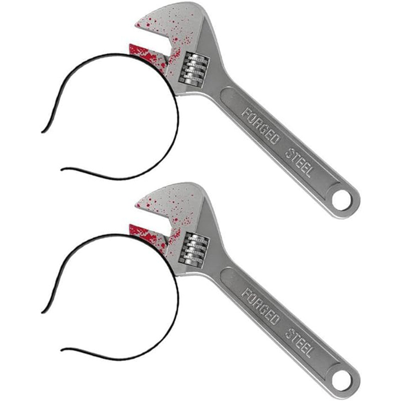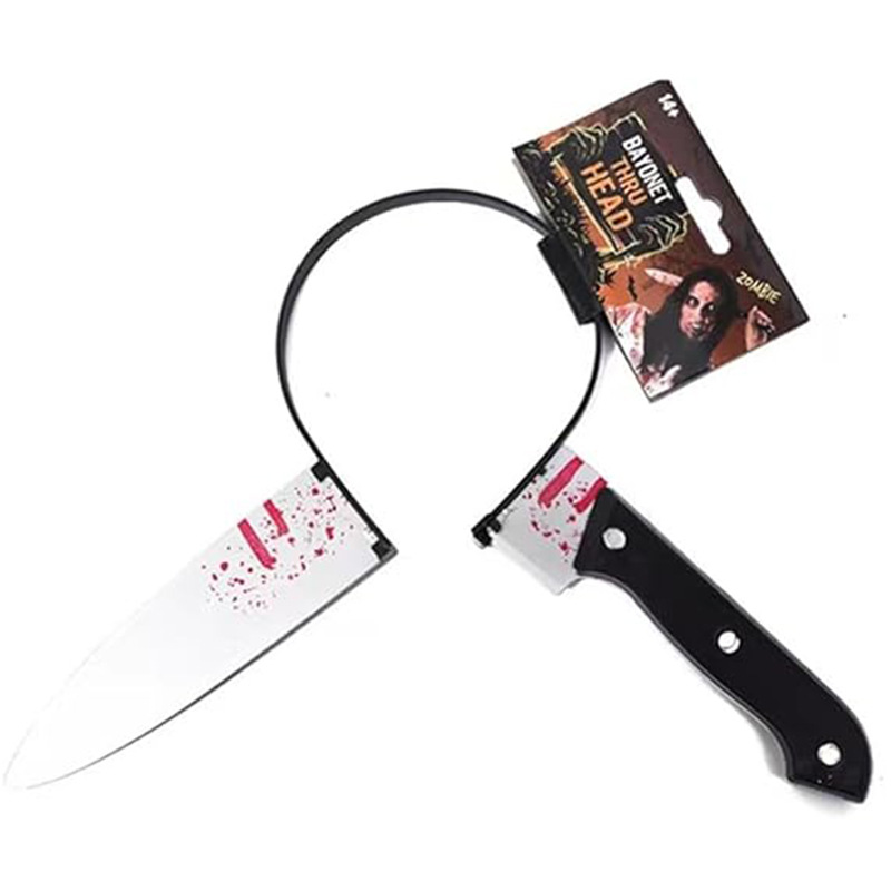 Cross-Border New Halloween Headband Knife Headband Horror Ax Scissors Saw Wrench Kitchen Knife Bloody Simulation Props