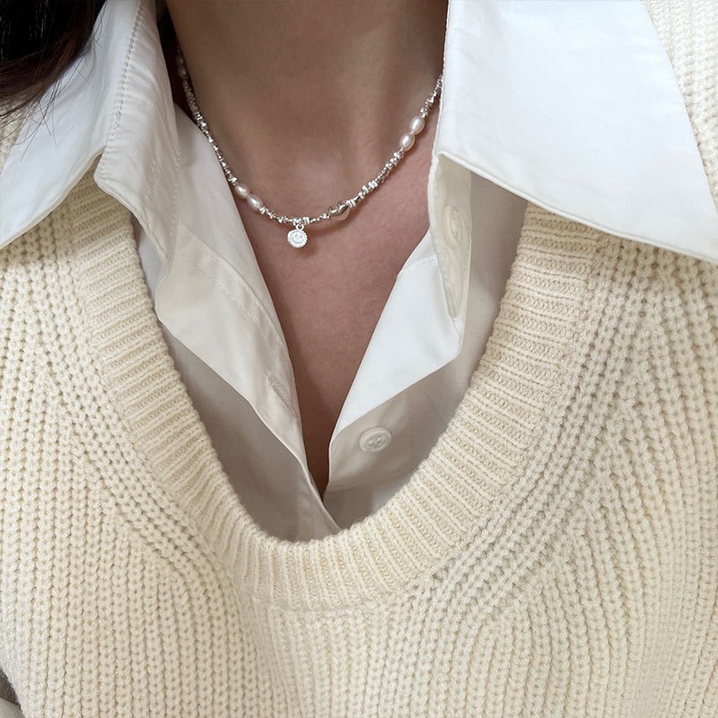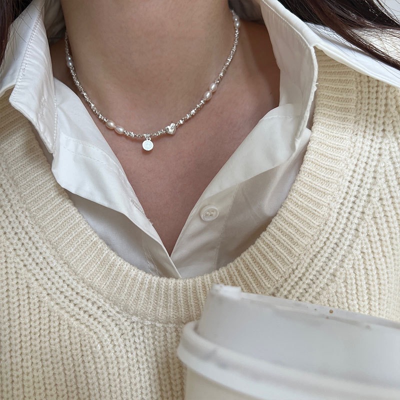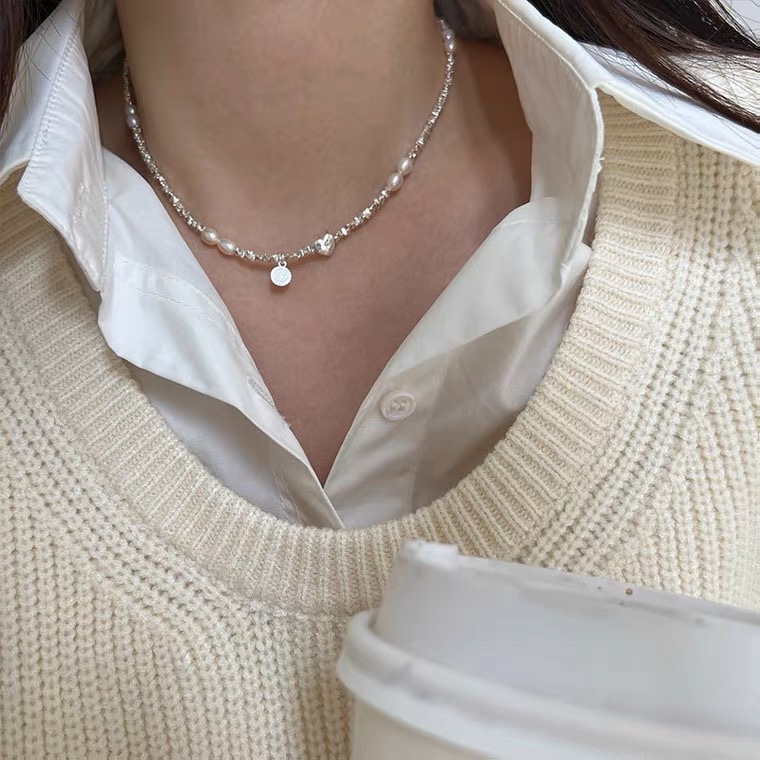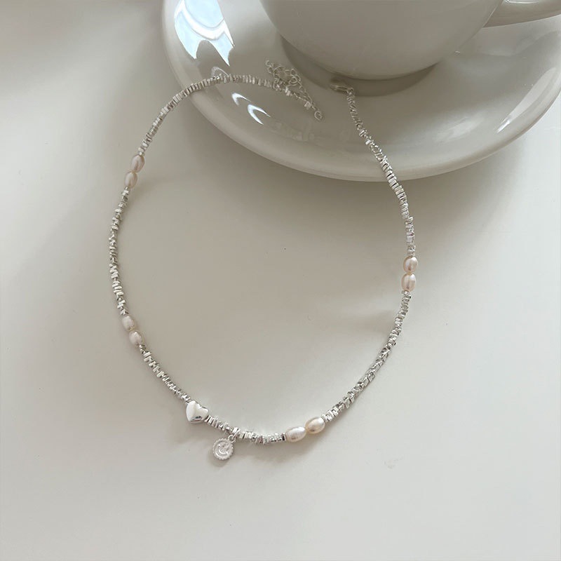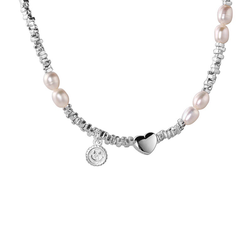 S925 silver-plated broken Silver smiley face lovely pearl necklace simple niche silver necklace light luxury temperament female
