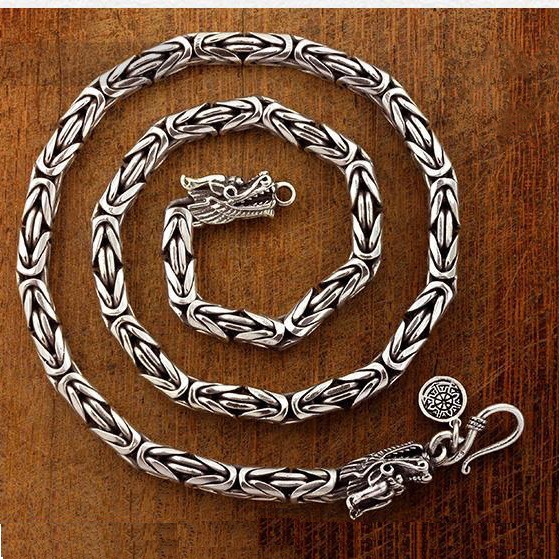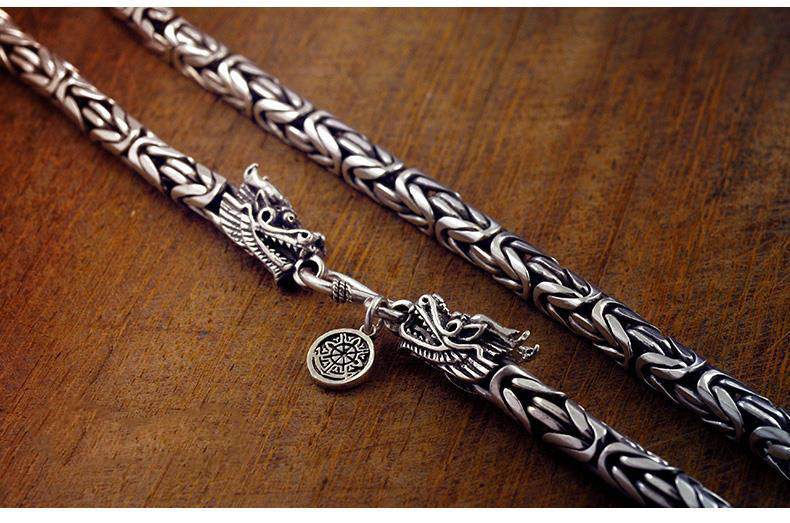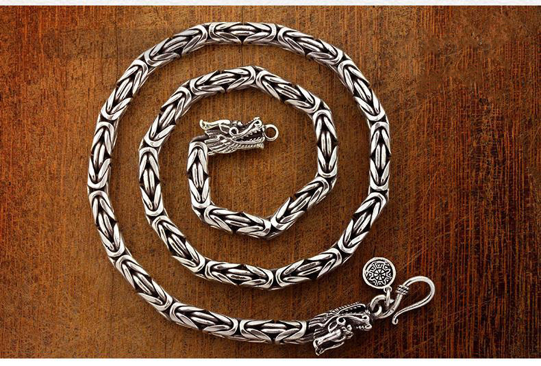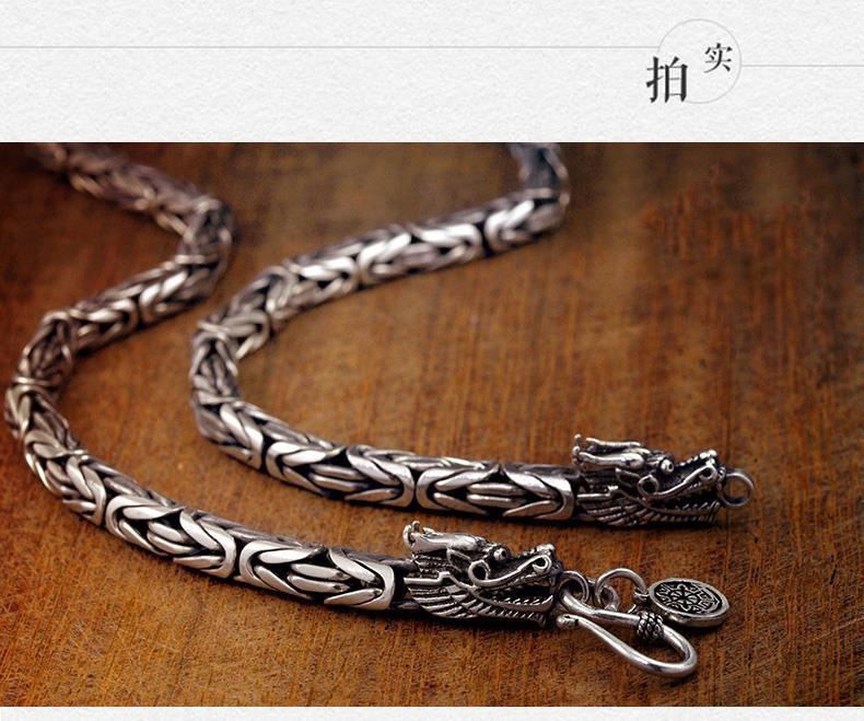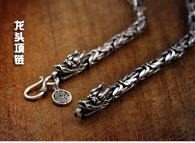 Dragon Head Silver Plated Men's Silver Necklace Men's Ping An Pattern Retro Aggressive Personality Men's Trendy Men's Thick Long Boyfriend Gift
